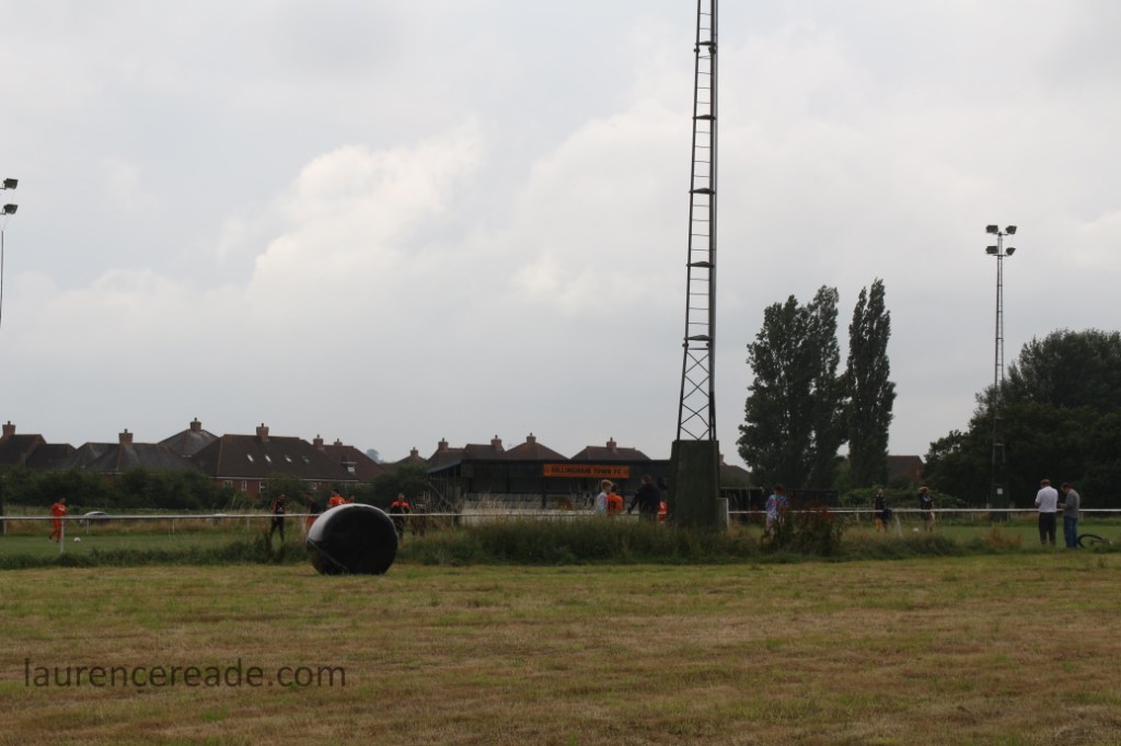 The issue was the new pitch, the grass hasn’t completely taken root as yet, perhaps the recent dry weather was the cause? Certainly the there were narrow longitudinal lines along the pitch, and a club official did comment that they were worried about players turning their ankles. The sad irony was that within 10 minutes of our game kicking off that is precisely what happened! There was enough time to have a quick look round the new ground before following the players over to Harding’s Lane. What’s the new ground is, is exactly what Gillingham Town need it to be. It’s smart, if rather functional, and once the chip for the floodlight controller arrives will be an improvement on the facilities they’ve left behind.