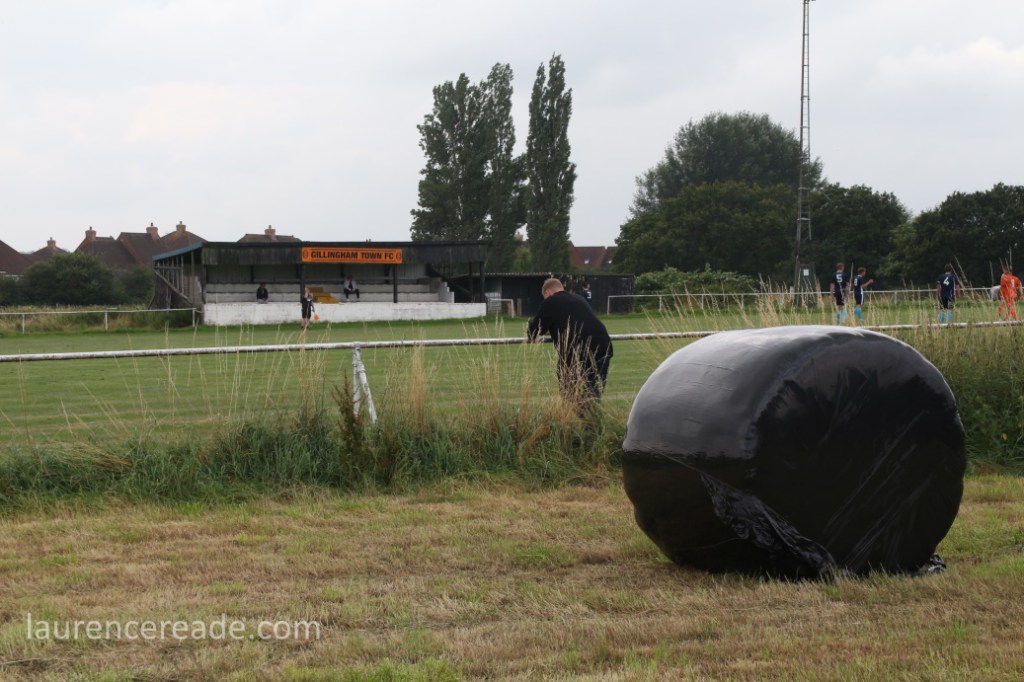 The ground really is an icon of non league, hewn as it is from a farmer’s field, with the stand a relic of an agricultural show of long ago, the pitch is aligned to suit the stand’s position rather than the usual other way round. The pitch had probably been cut and marked in a hurry, the pasture was beginning to reclaim the perimeter pathway, and the “Dundee United” seats had long since gone but the ground still had charm by the bucketload. It all made its imminent loss all the more regrettable. I fully expect to see little more than a field here next time I visit, but I do hope the club finds a place for the “Gillingham Town” sign on the old stand.