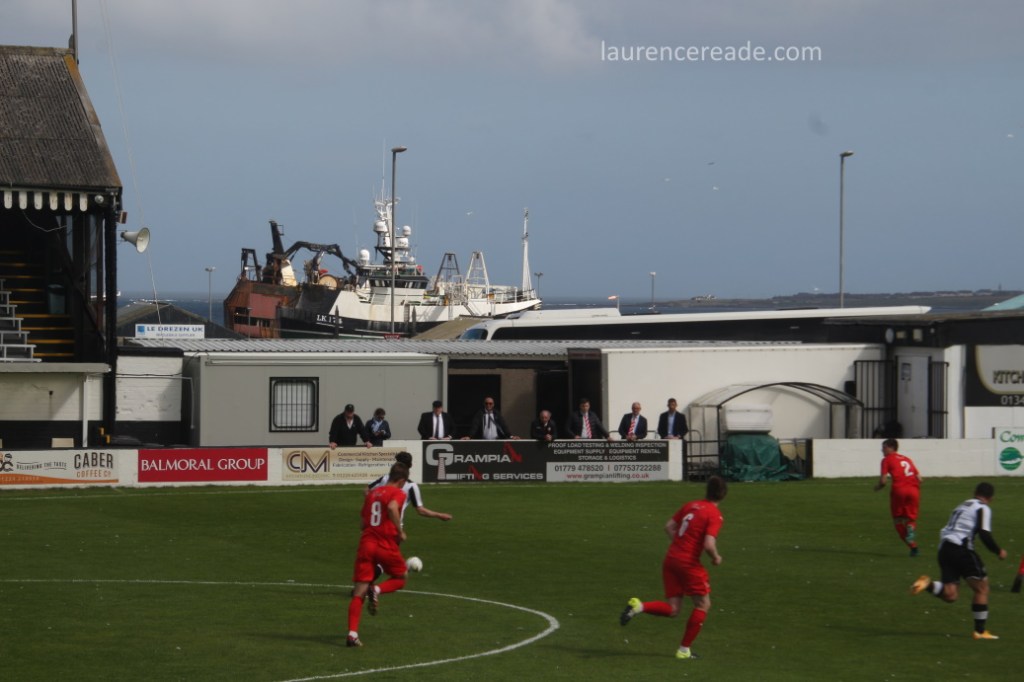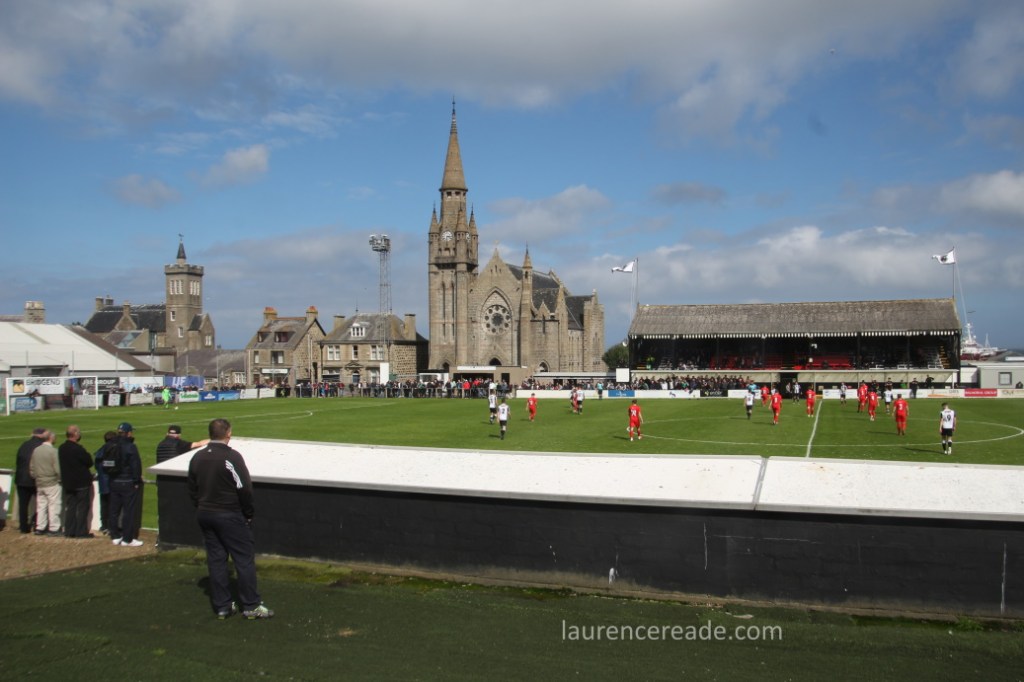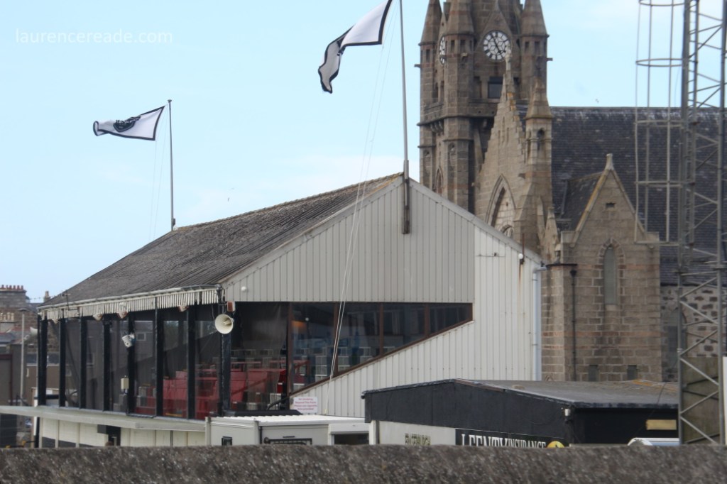 If ever there was town that was by and for fish it’s Fraserburgh, it holds the distinction of being Europe’s biggest port for shellfish, and a major one for whitefish too. It is, therefore highly appropriate that the club has a sponsors’ board pitchside purely for fishing boats and the roof of the stand is protected from nesting birds by old fishing nets. The town’s lighthouse at Kinnaird Head was the first to be built in Scotland, and is well worth a visit. Sadly the town is also the furthest in the UK from a passenger railway station. Fraserburgh Station closed under Beeching in 1965. These days the nearest station is at Inverurie (another place I once put as being “On the way” from Inverness to Glasgow) which is a real shame, the site of the old station was perfectly placed for both the docks and the football ground!