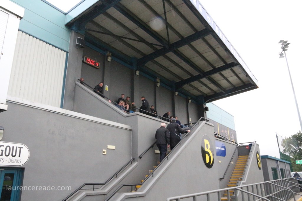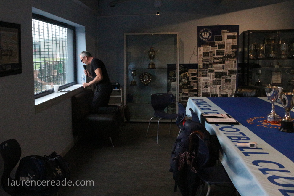 So, what is Spain Park like? Odd, no make that unusual. The capacity is just 876 but the sightlines are good and while this isn’t a ground for those who like to watch from behind the goal, it proved to be an excellent evening out. A lot of that was down to the president Brian Winton. I called in at the boardroom to ask for permission to take photos and within seconds Robyn and I were enjoying his company tea in hand!