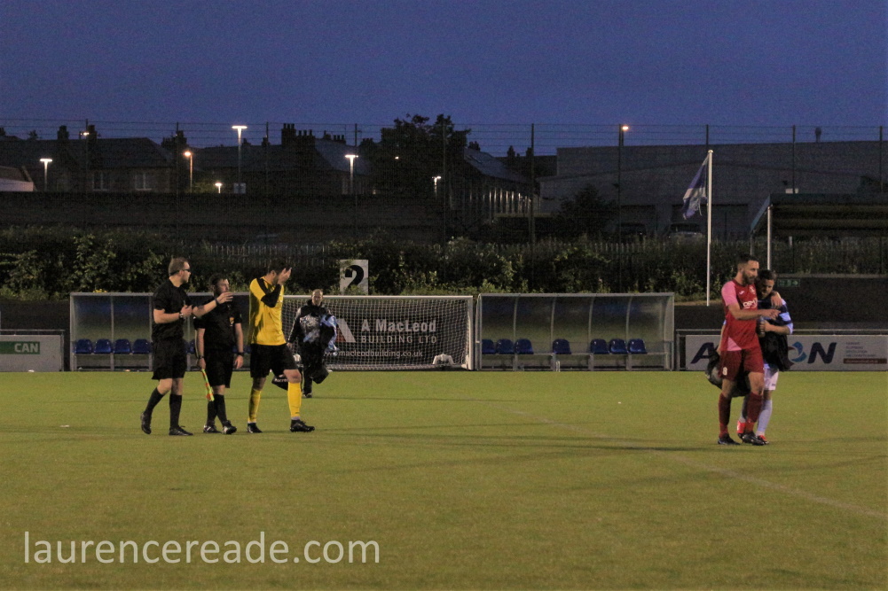But the night will be remembered for the 4 dismissals, and you can blame my wife Robyn for them. We expected a good game, and got one but Robyn remembered the physicality of the game in the West and East Juniors such as Bo’ness and after a few minutes she wondered whether we’d see anything similar? Almost a soon as the words exited her lips McKeown got his marching orders….!