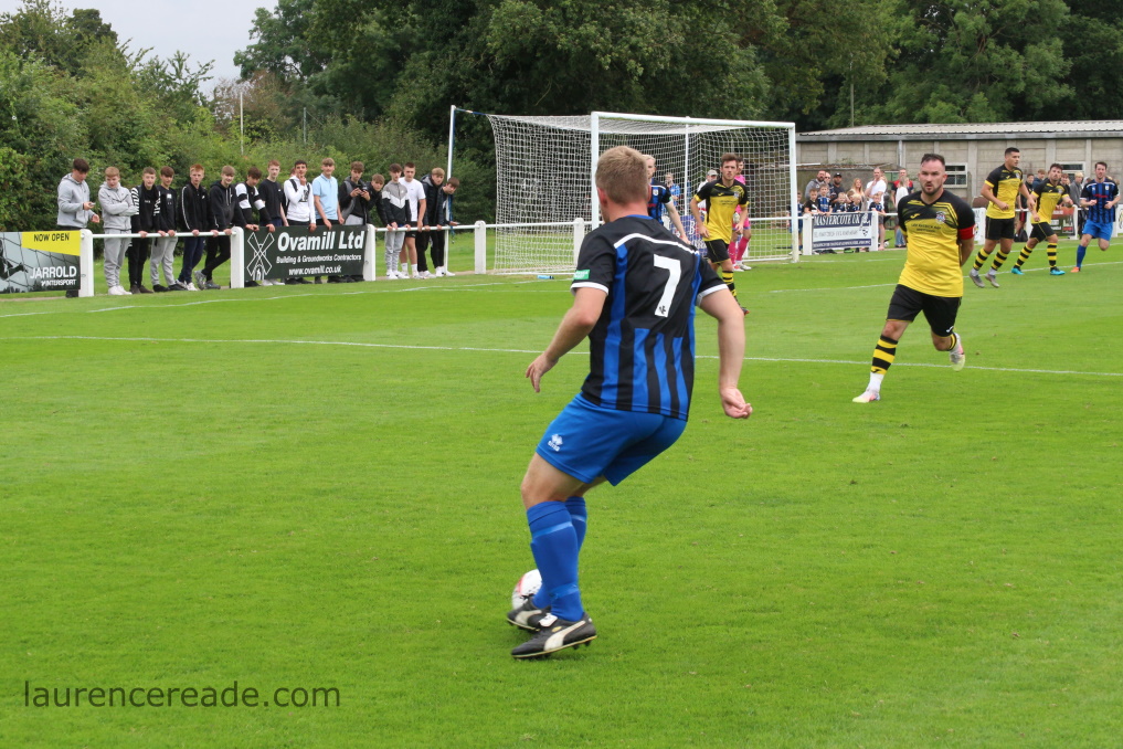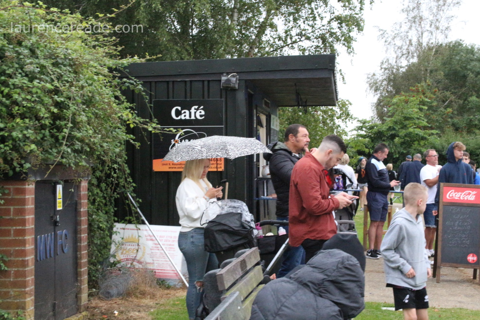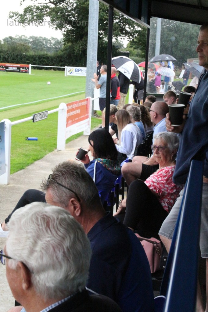 Mulberry Park reflects that rapid elevation. On one hand it remains the village football ground on the common with the players changing in the local hall, on the other the ground is railed, enclosed, lit and a quirky stand erected. There’ll be more improvements as the club adjusts to life at Step 5 but even to outsiders it was obvious that there’s real enthusiasm at their club and half the fun of being at this game was seeing the village get behind the team.