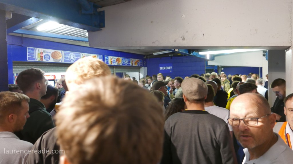 I know a lot of common sense has left the game but the stewarding was notable for trying to be friendly and unobtrusive, and while the concourses are narrow the food and drink was served remarkably efficiently. In fact my only real bugbear was the pitchside advertising. I know the moving pictures are meant to be distracting, that’s why the firms who take the ads pay extra for them. But when those screens are so bright you can’t actually see the ball when the winger dribbles in front of them, isn’t that a case of the cart being put in front of the horse?