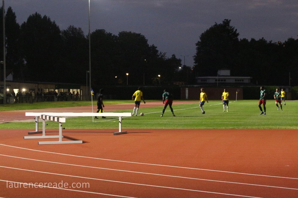 I must admit that I did find it more difficult than normal to watch the game- a factor of being 8 lanes from the action. I found myself getting lost in the moment- the fans, the feeling of returning home, the buzz was there, and was very infectious! The game was important though, now Town are home they can build the team, struggling at the wrong of the Essex Senior League. It was clear that those involved saw Sporting Bengal as something of an acid test. The visitors were rock bottom with no points so beating them was seen as a minimum standard.