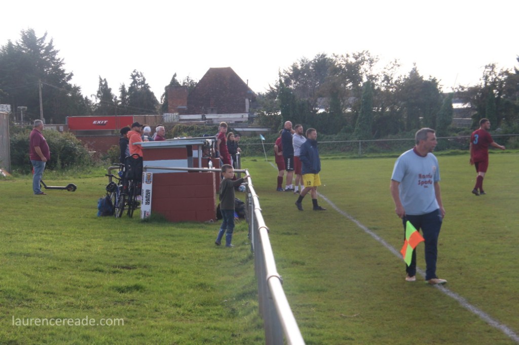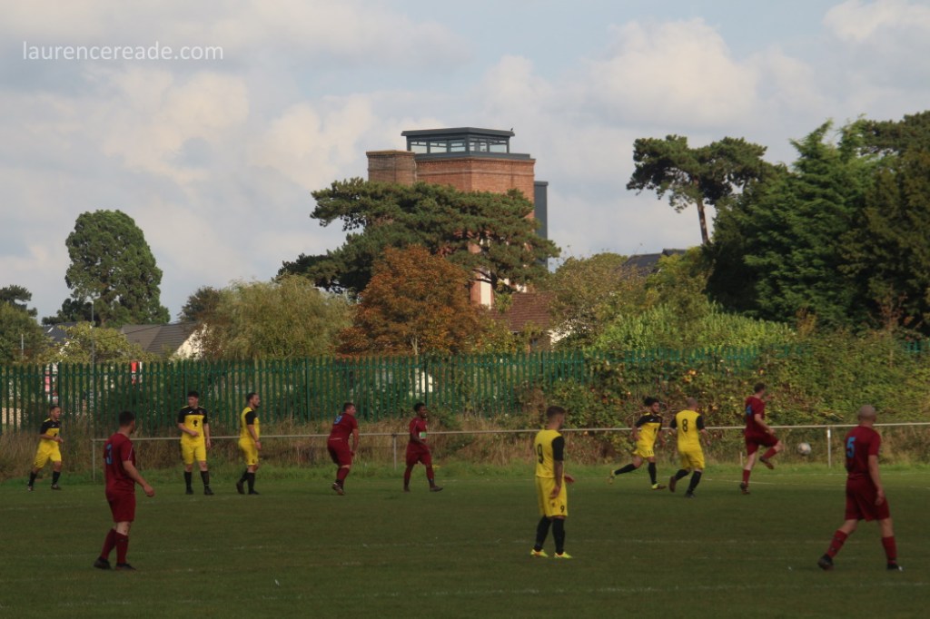 I suppose the first thing we need to deal with is the abbreviations. The DRG is Dickinson Robinson Group who made paper-based products, mainly stationery- chances are you’ve used a Basildon Bond-made envelope. The firm was a merger of Hertfordshire- based Dickenson’s and E S & A Robinson Packaging based originally in Bedminster, Bristol, close by to this game’s visitors! The club moved from Bedminster to the works ground in Carston’s Lane, Mangotsfield, changing their name from DRG to DRG (FP) along the way. When the ground was sold and demolished in the 1990’s the club merged with Stapleton FC and moved here to Frenchay Park, and became DRG Stapleton from 2001-2012; you can see the painted-over signage on the front of the clubhouse