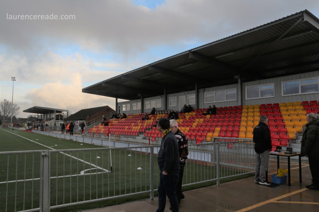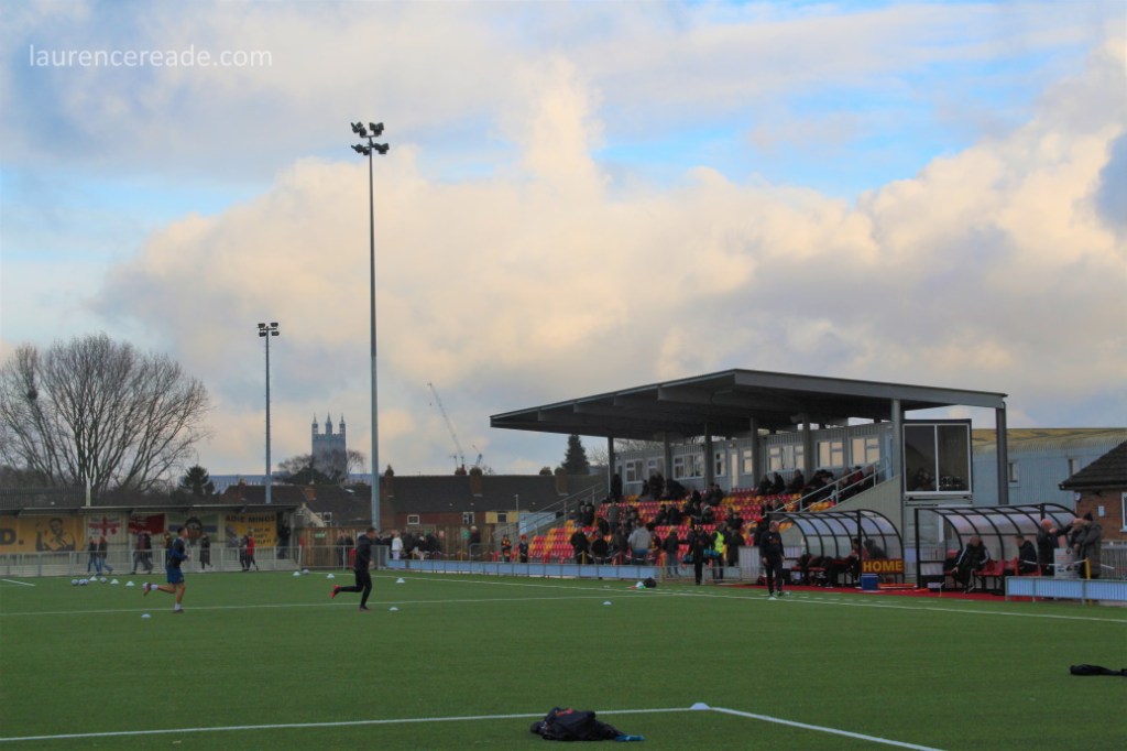 It wasn’t completely inevitable that I’d be watching Gloucester City. Post Christmas football seems to involve a dual lottery, firstly that of waterlogged pitches, and secondly Covid postponements. As is becoming a tradition these days Robyn and I spent the second half of Christmas Day with family in Bristol, and while I’m sure I could have found two games to do on Christmas Sunday, I probably needed the lie-in more. And Gloucester’s pitch did mean that the first half of that lottery would probably fall in my favour. Of course if you know the history of Meadow Park, you know the irony of that last comment!
