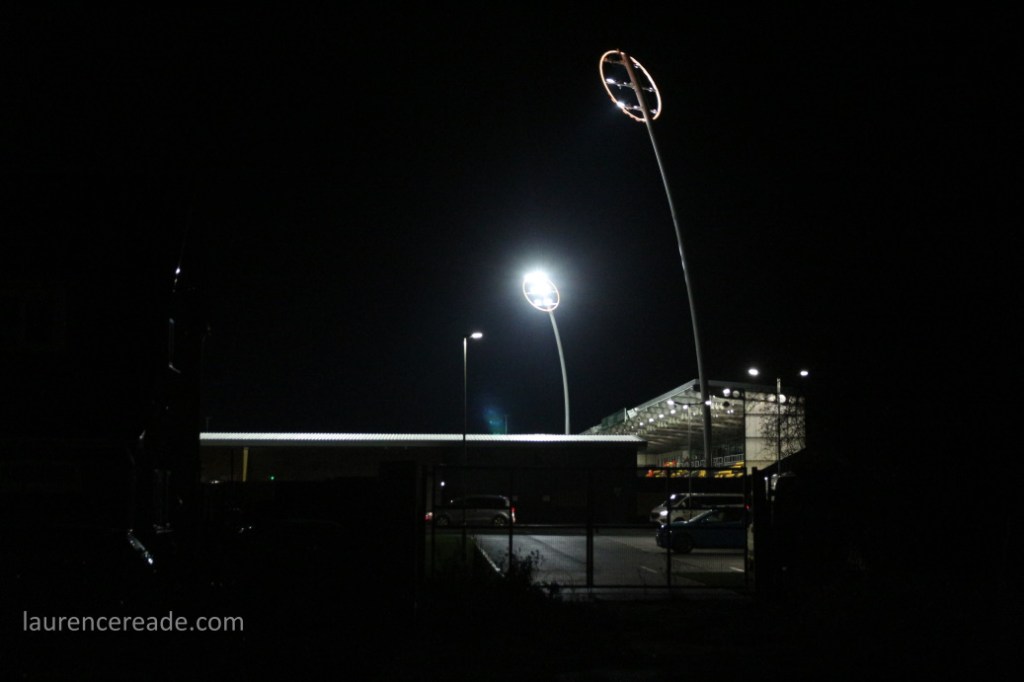 On one hand, York’s is bigger and all-seater, but there was a lot to like here. For one thing terracing is an option here, but it was fact that the stadium is for Boston United only that enthused. Seeing reference to Boston United heroes like Paul Bastock and Paul Ellender in the fabric of the place anchors the ground to the club’s past. We never had that when Oxford United moved, it took a year or two to even have “Oxford United” on the front of the place! And to be clear about it, I do prefer Boston’s new ground to York’s, mainly due to the little things, unobtrusive stewarding, the cute teamsheets that double as raffle tickets, and the floodlights that evoke those at Salford City, but here can be seen for miles around.