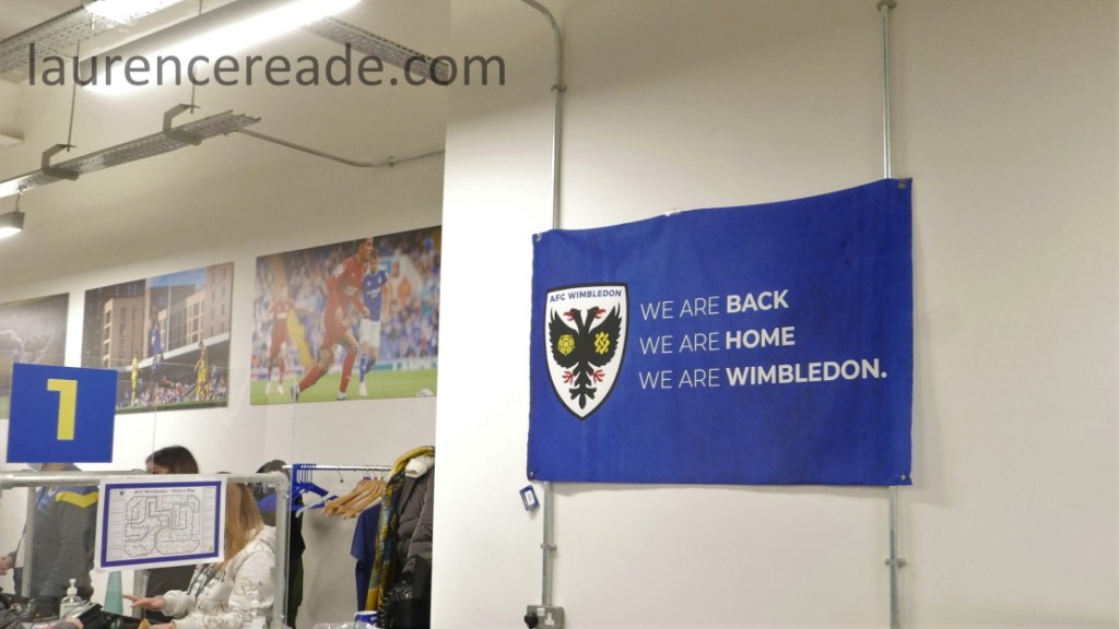 But a club isn’t about the fixtures and fittings its about camaraderie and identity and both of those were in abundance here. Both Robyn and I found a lovely buzz about the place, and sitting with Terry Hall of “Terry’s Badges” fame was a lovely way to spend an afternoon. It felt that after nearly 20 years the circle of watching a protest club playing in a borrowed ground had been completed with Wimbledon, or its descendent, returning home to Merton, and so close to the site of the old ground.