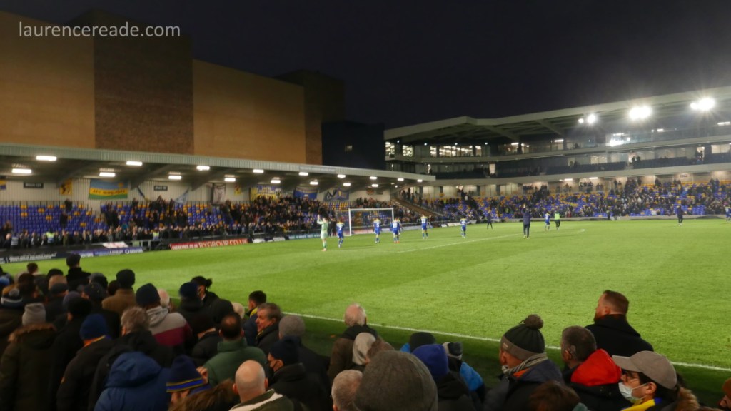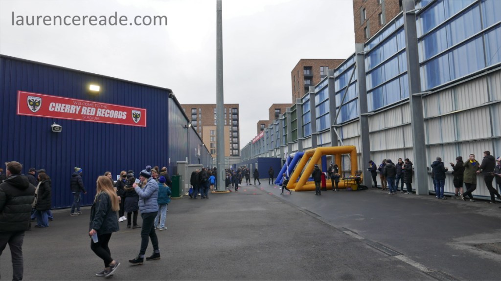 Inevitably the plans were scaled back, it took £2million crowdfunding, a £5million bond issue and further investment by ASOS owner Nick Robertson ( who became a minority shareholder) to build the 9,215 capacity stadium you see now. And it isn’t quite what I expected!