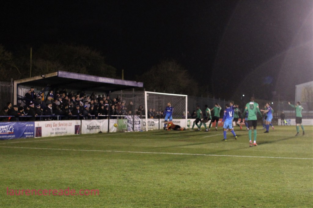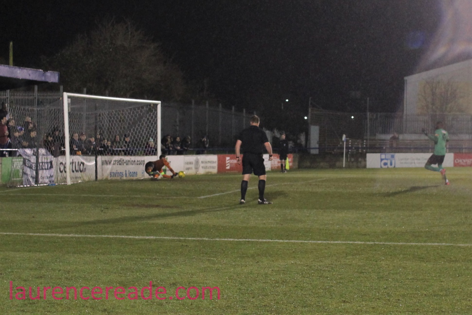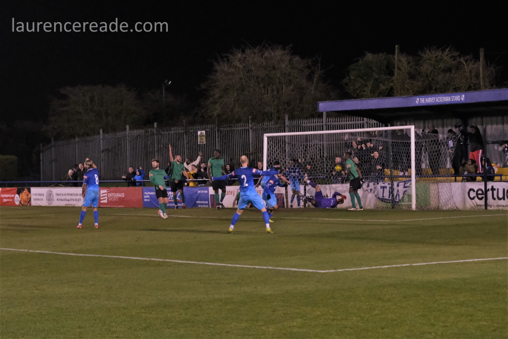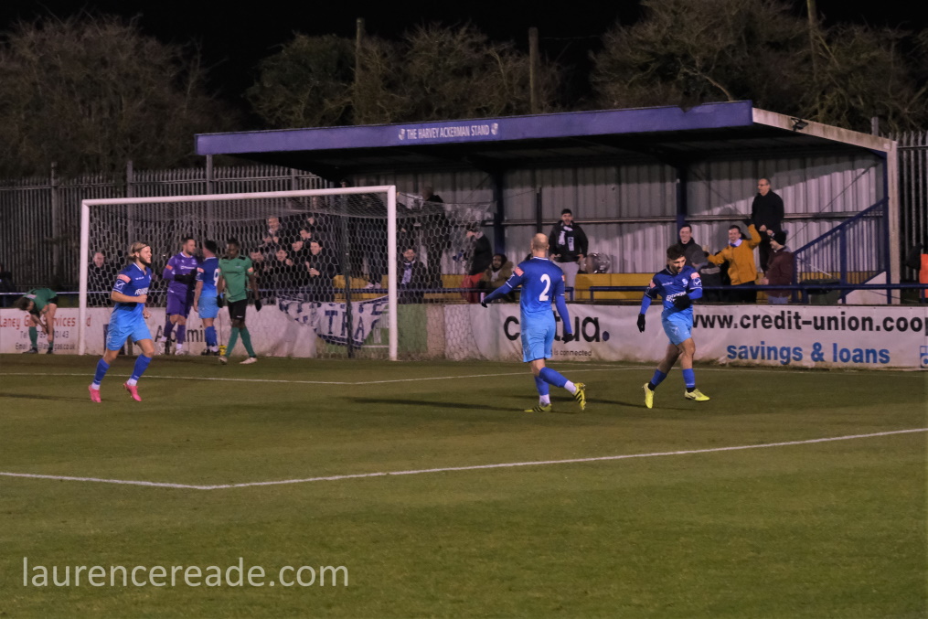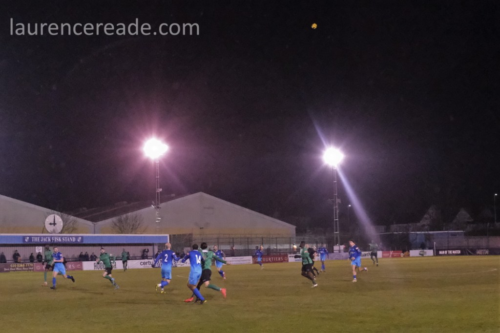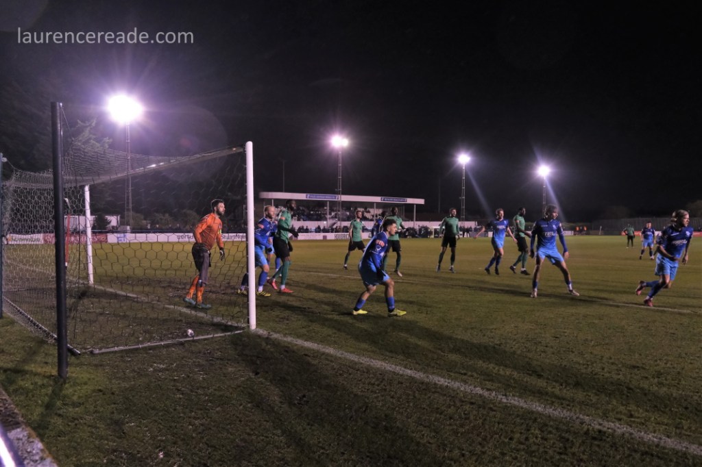 It took a little time to negotiate the turnstiles not helped by a group of young lads trying to claim that could get in as children, and yes I did see them all holding pint glasses at half time! The surprise was just how well Wingate & Finchley did against a side aiming for National League South football. The normally prolific Muhammadu Faal had an off-night missing a penalty, and for Wingate Antonis Vasilou celebrated his loan from Barnet being extended to the end of the season with a brace, the second a thunderbolt from 30 yards.