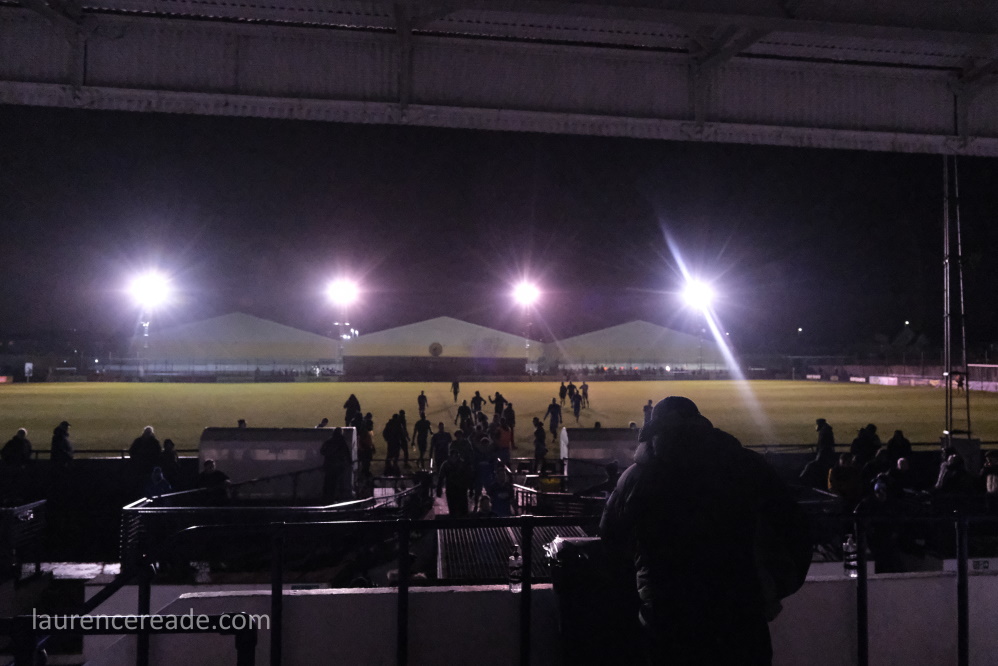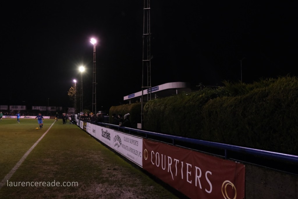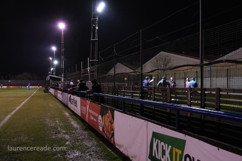 In fact the only fly in Wingate’s ointment was the nearside floodlights failing on the stroke of half time. At 3-0 up an abandonment would have been a tragedy for them. Fortunately for them, the fault was fixed during a slightly extended break. There was a silver lining even then, it allowed the rain to clear and the trip back avoiding the charge only delayed slightly.