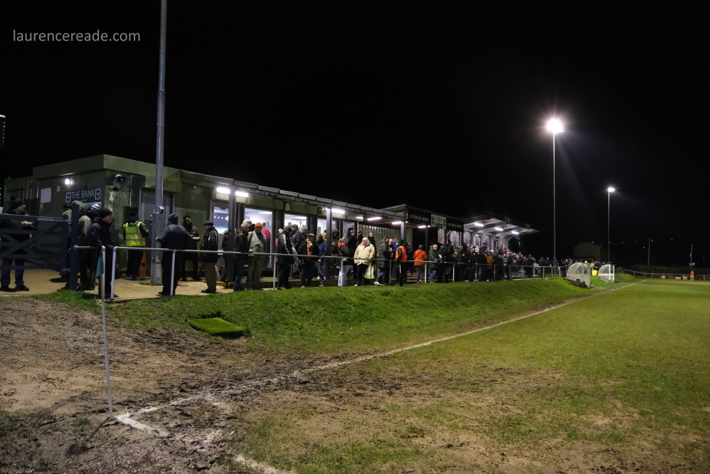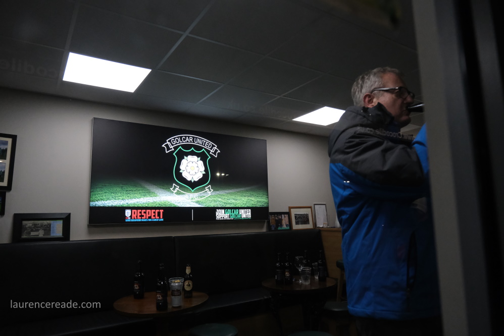 It was busy, the car park was full, the coach couldn’t get anywhere near the ground, and once in the catering was stretched to breaking point. Don’t see that as anything resembling criticism of Golcar United through; they were superb hosts. The issue was this hop has become close to being a victim of its own success, the truth of it is asking any Step 6 club to cope with 467 visitors is likely to create what we saw here, and at just about every other club on this year’s hop.