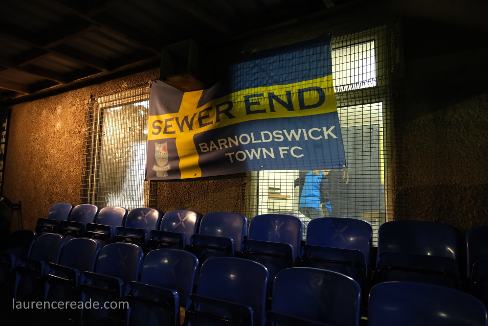 Well Barnoldswick Town play adjacent to a sewerage works, and yes they do play up to it rather. Standing at the Sewer End is a new one for me, and I’ve clocked up my fair share of grounds! Moreover that new terrace with the larger than normal steps, is that way because inside the lower step is a huge sewage pipe! Cue the jokes about “Sh!t football” but I bet “Barlick” as the locals call themselves have heard them all.