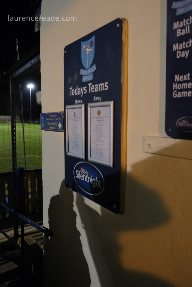 As the advance party we arrived to a car park already full and the cars parked along the narrow access road, making the coach’s access to the ground impossible. We phoned back to Chris Berezai who organised access via the far end of the ground, and with time tight got kick off delayed by 15 minutes.