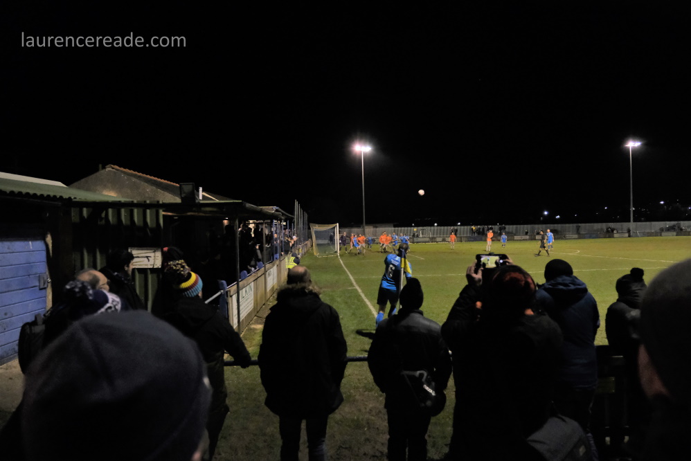 Once it all calmed down a little and the young fans from the competing clubs had allocated themselves a side of the Sewer End we were treated to an entertaining evening- by the fans off the pitch and the players on it. The statistics will tell you Avro won it, and boy am I looking forward to visiting them, but the main reason they won was that Liam Ellis was just that little bit sharper than the Barlick defence.