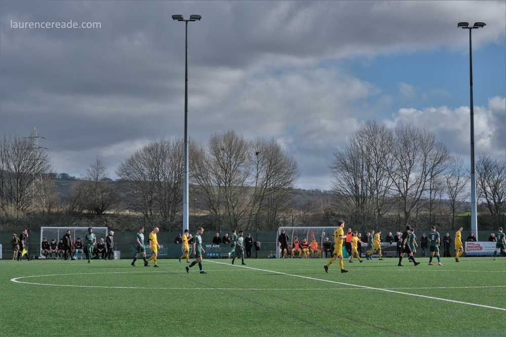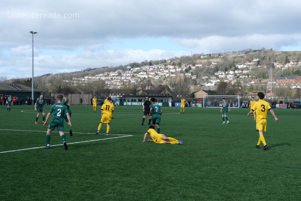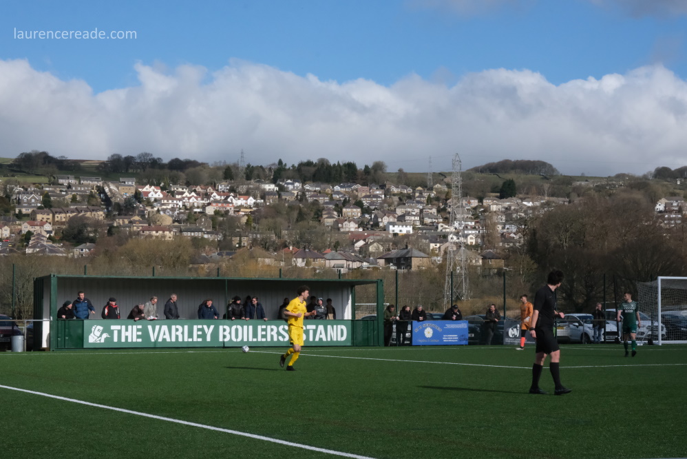 It’s that both clubs have played home games at Keighley RLFC’s Cougar Park while they found grounds that would fulfil Step 6 ground gradings. Another oddity is that Silesden play in the parallel Northern Counties East to the North West Counties League, and turned down the chance to host a hop game a few years ago. I suppose the border has to be somewhere…..