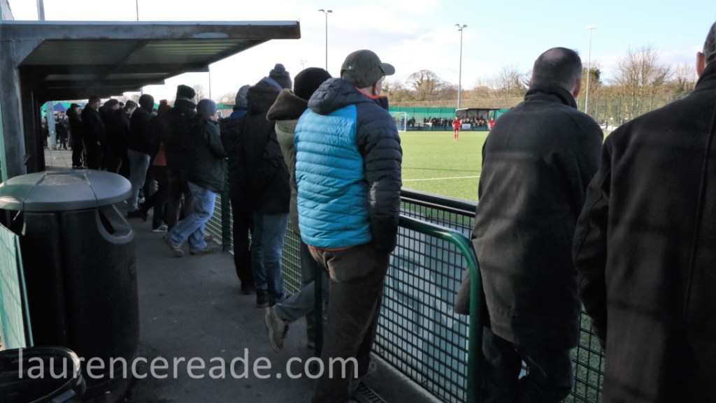 And it was well worth people showing patience too. Now, I don’t think anyone would pick a caged 3G ground as their ideal place to watch a game, but Ilkley worked hard to make it work for them. Perhaps more than any other of the weekend’s hosts club I saw the tips GroundhopUK give acted on. I saw the advance ticket holders waved through, bottles of locally produced real ale on sale, handy to wash down the sausages and other delights from “The Commute.” As for those mugs with Baht’at on them, how could I refuse?