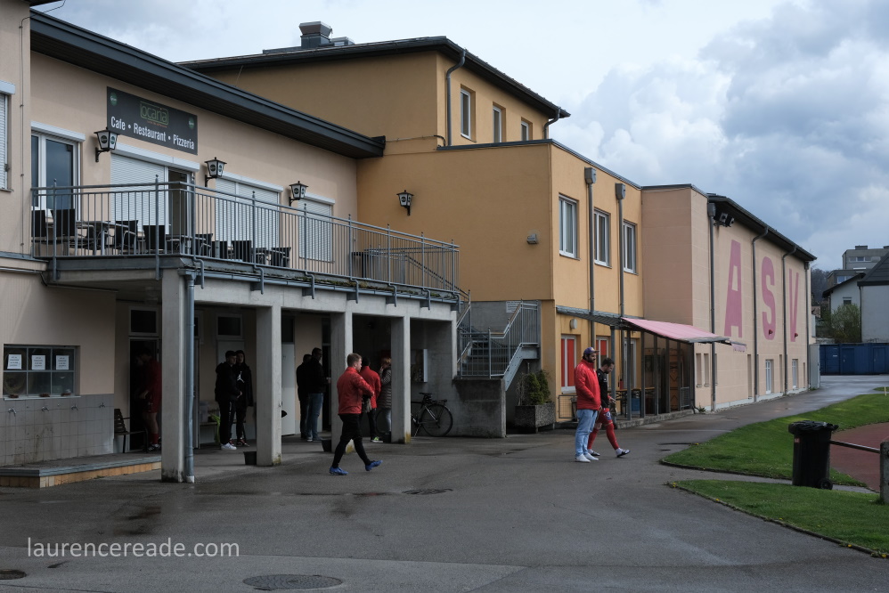 I’d spotted ASV Salzburg had a game only 2 km away from our hotel, and since they had an active Instagram account, I followed them and checked the fixture was correct. I got an instant follow-back and confirmation It turned out the account is run by two of the club’s younger players Eren and Marko as a means of raising the club’s profile, and to get more people from the area to come to watch them. Well, it worked in the sense that they added two more on the gate, but locally? Perhaps not! What happened next answered my question earlier, the truth of it was we were looking for a club to fall in love with. It was an easy enough task to catch the trolleybus to the Sportenlage Itzling too.