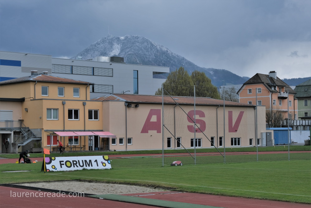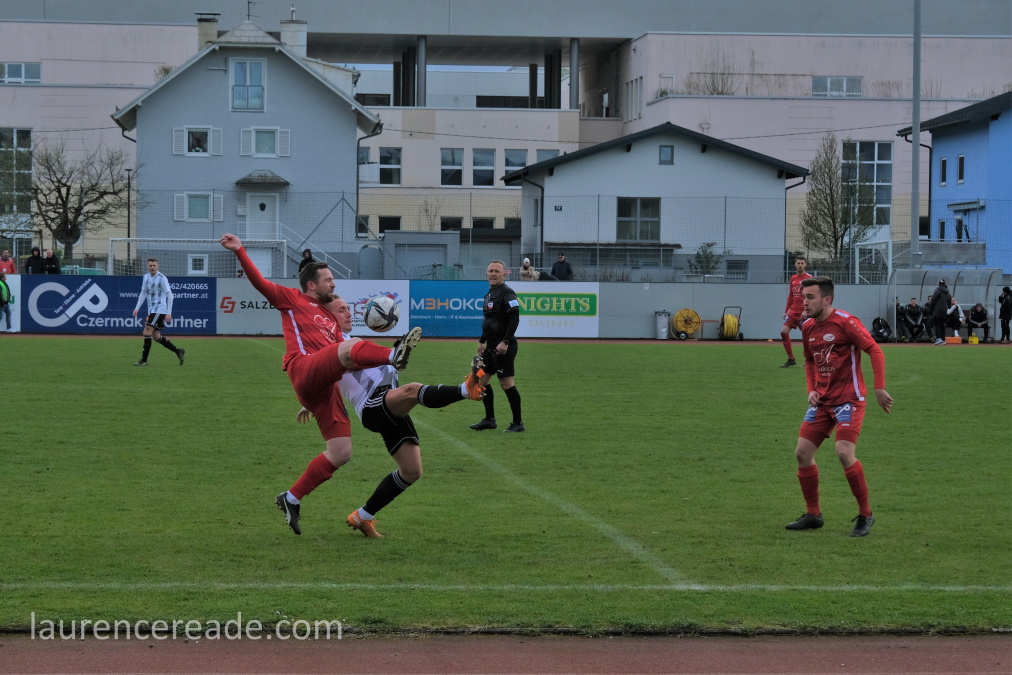 I should explain how the Austrian pyramid works. The top league is the Austrian Bundesliga followed by the 2. Liga. After that there’s the 3 Regionaliga split Ost (East), Mittel (Middle) and West (West). After are the Landesliga organised by the local associations, so in the Salzburg area the fourth level is the Salzburgliga and below that is the 1. Landesliga. Or if you’d like a more succinct description, we walked into a 5th division club’s promotion tilt! There was a link back to the UK too, Gerhard Fellner was a youth player at ASV Salzburg, and his playing career included a stint at Falkirk. Until recently he was manager at Wiener Neustadt.