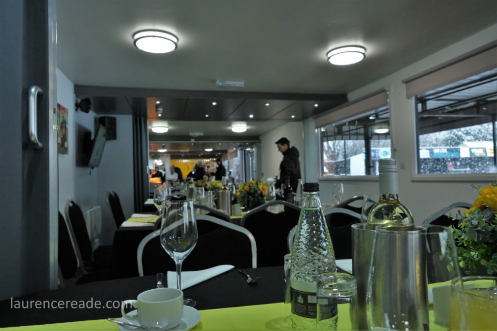 Robyn and I decided to push the boat out a little and booked hospitality to celebrate, in the form of a pre-match meal, drinks, and a seat in the main stand. Joanne Towler in the Commercial team was a joy to deal with, we booked ourselves in a hotel in town for 2 nights and it would have all gone swimmingly had it not started snowing as we parked up!