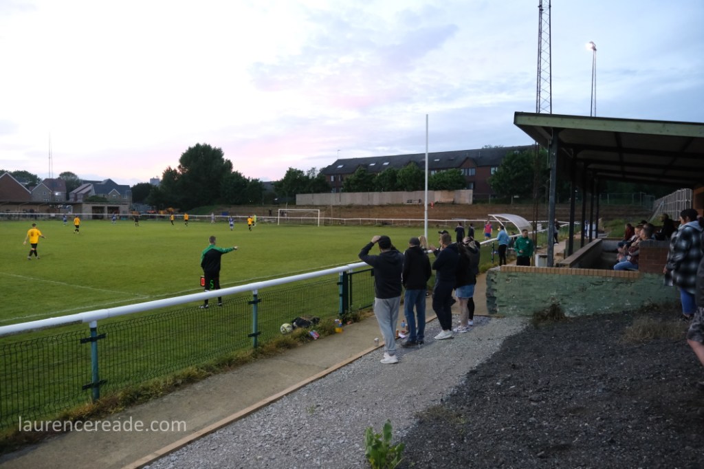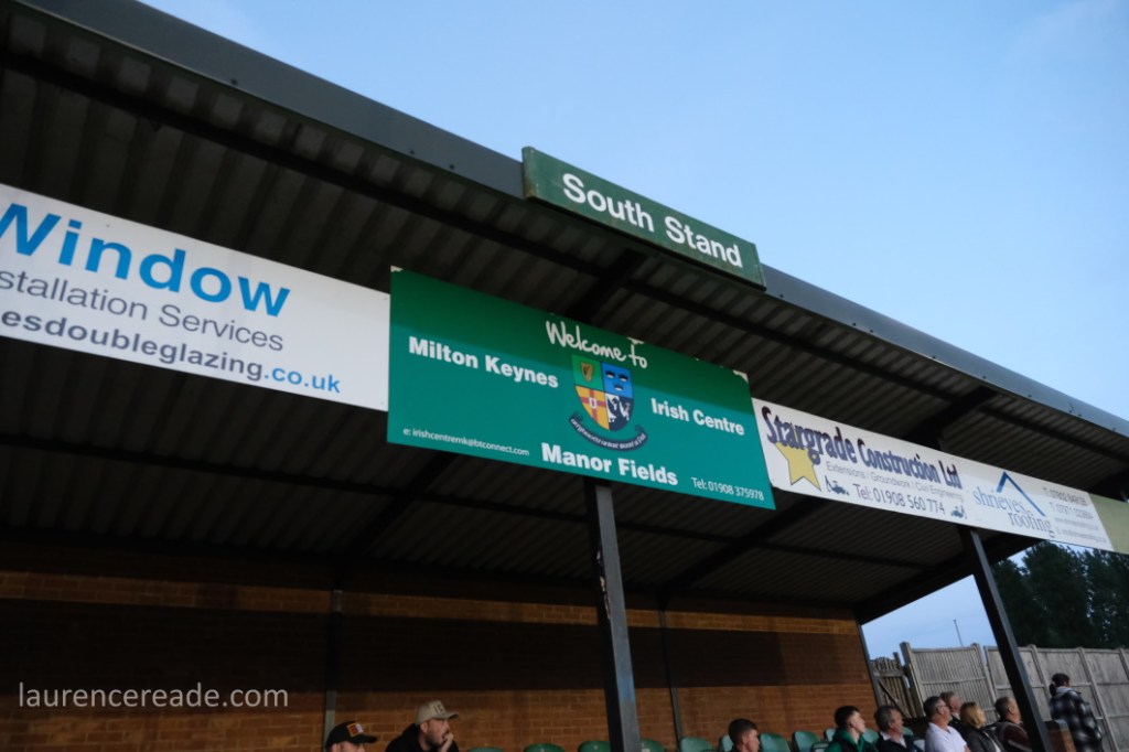 I’d sat at home planning very little, but then my wife Robyn had been offered a spare ticket to watch “Les Miserables” in Milton Keynes that evening. She needed a lift there so I needed something to do during the show, and where better than Manor Fields? Quite honestly a groundhopper that needs to tick off every single club that’s played home games here would have a nightmare. The ones I can think of are are Milton Keynes Borough, Bletchley WIPAC, Bletchley Town, Buckingham Town, Unite MK, Milton Keynes Robins and Milton Keynes Irish Veterans- the final 3 all merging to form the current MK Irish team.