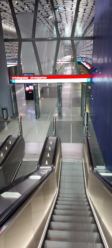 That means Finnish trains run on Russian gauge tracks- 1,522 millimetres (5 foot gauge) whereas Great Britain and most of Western Europe uses Standard 1,435 mm (4 foot 8 and a half inch gauge). You’ll see it on the train from the airport, and on the Helsinki metro, the most northerly metro system in the world! It means that if you travel by train from Finland to Sweden you will need to change trains at the border at Haparanda. The Haparanda/ Tornio bridge has a short section of dual- gauge track! It’s worth commenting that we used the Helsinki/Stockholm ferry to reach Sweden but more on that in my next article.
