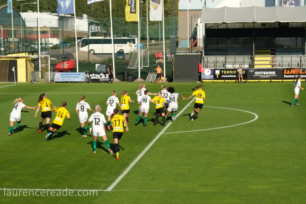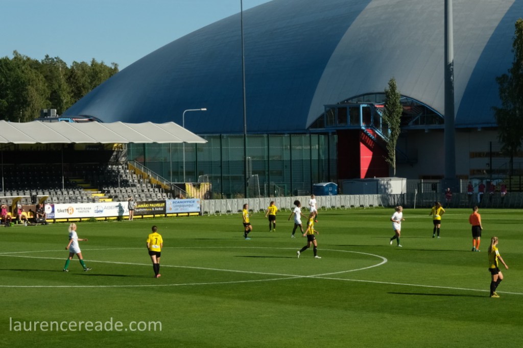 Espoo I’d assumed is pronounced ESS-Poo, but ESS-BORE would be closer to it. And while our options did boil down to this game only in the top flight of Finnish football. “Naiset” translates as women and I was completely comfortable with that. For one thing I’d like to watch more women’s football, and as Englishman, how can I not watch the game of the European champions?