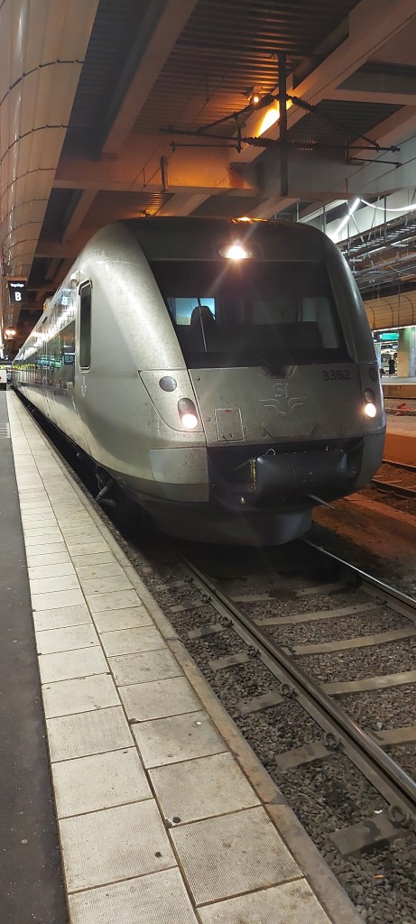 We took the express train from Stockholm Central, and here’s two groundhopping top tips, book in advance, it’s cheaper, and if you’re in first class there’s free hot drinks and the train leaves before 9am you get an inclusive breakfast too. Our train left at 8.50, so it would have been churlish not to, and who couldn’t love the extra-wide reclining seats as we blasted north from Svealand to Gästrikland?
