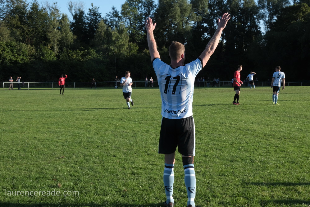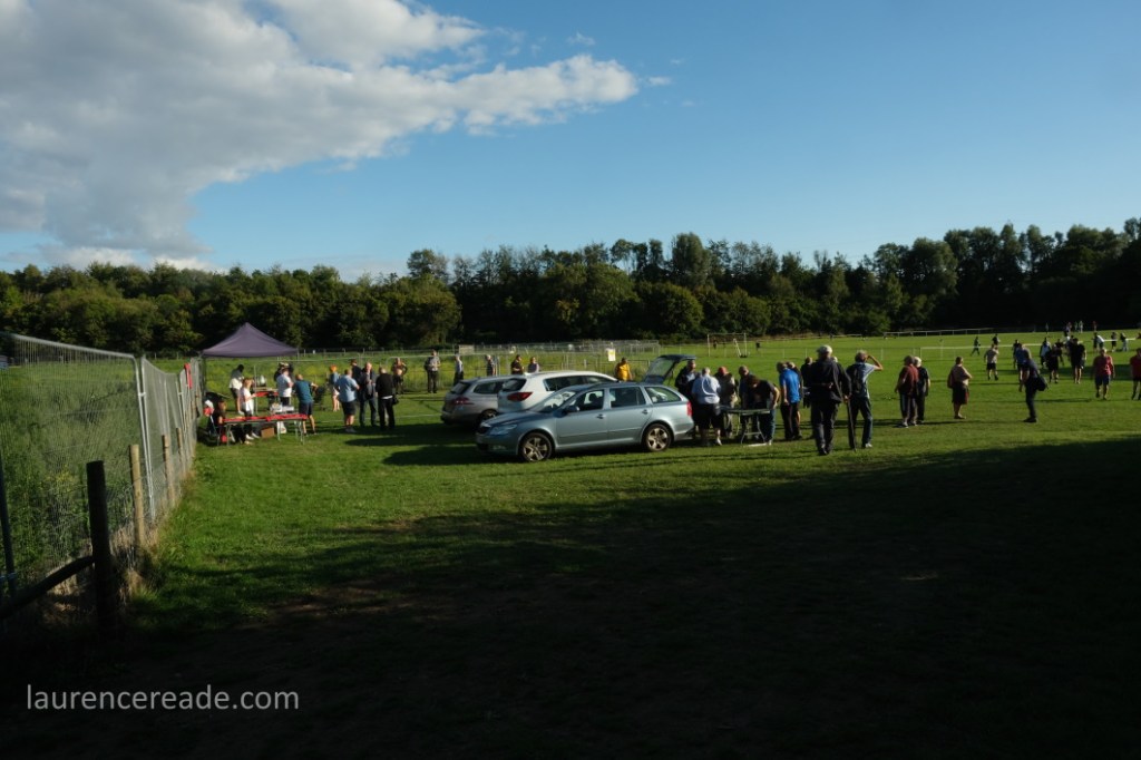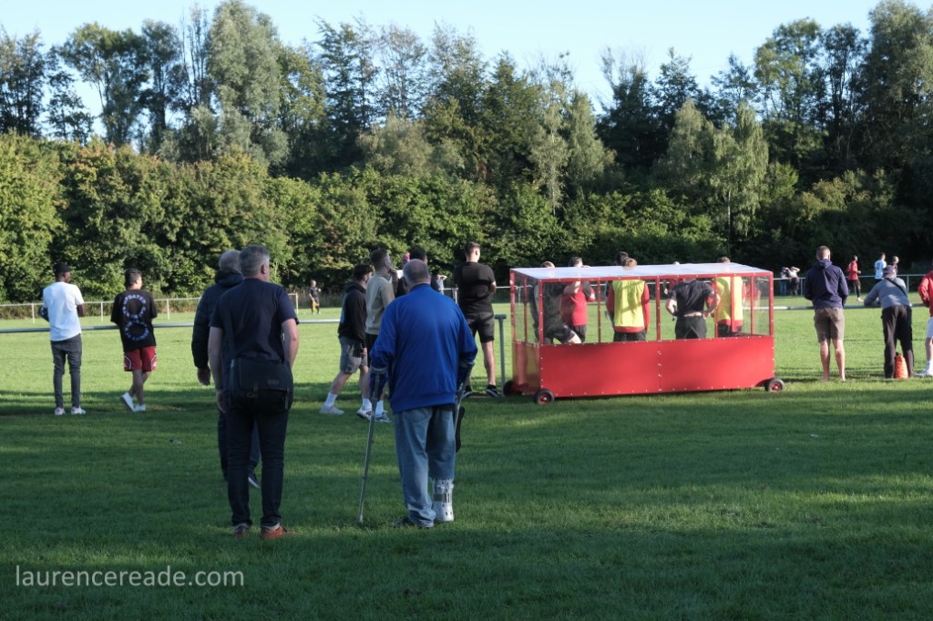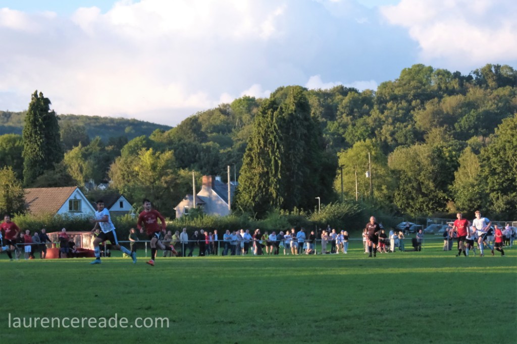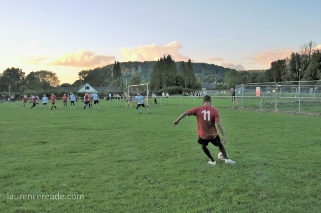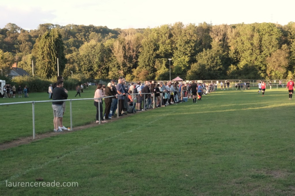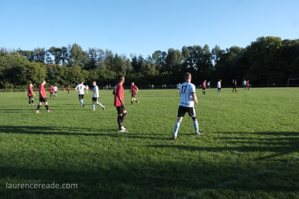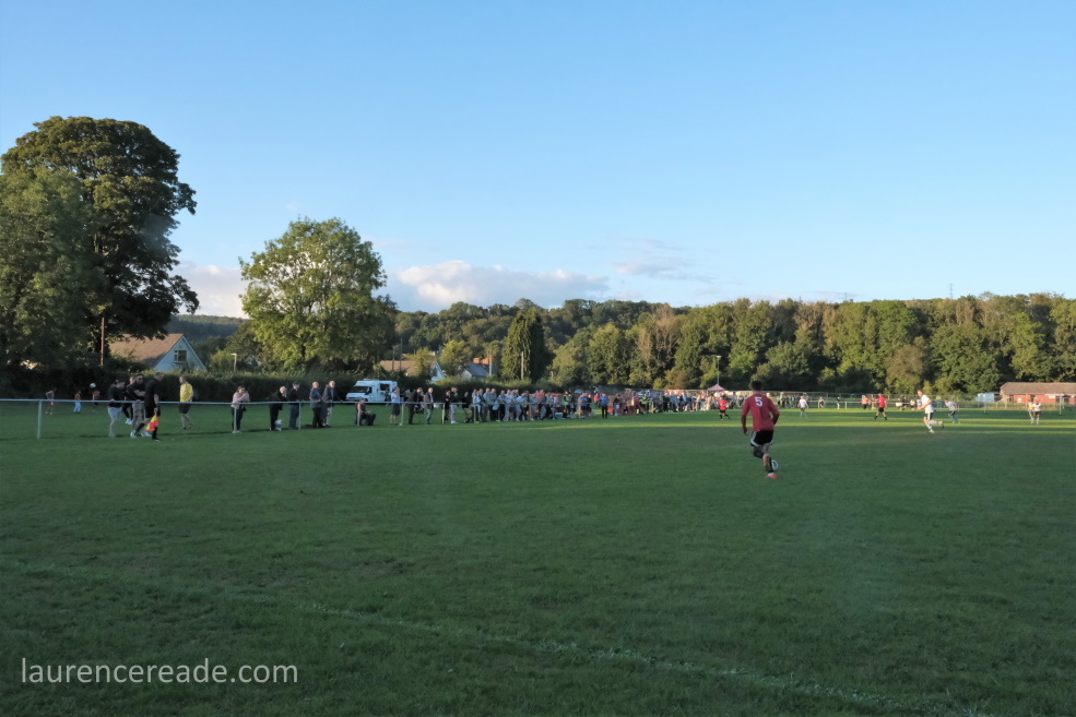 The problem was that a new water main is being installed in the village and that meant the coach couldn’t get down Ironbridge Road down to the ground, and the main is being placed under the football club’s normal pitch. Handily for them, the rugby club have folded (although their social club is still open) and so for this season the football is playing on the adjacent rugby pitch.