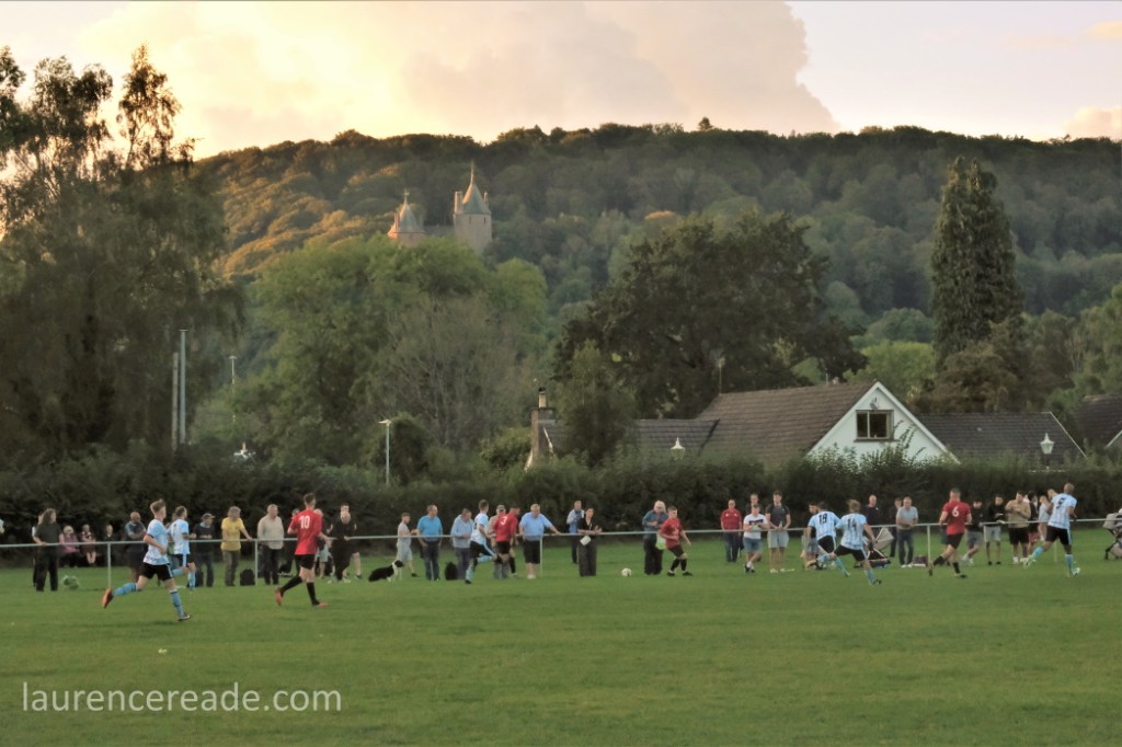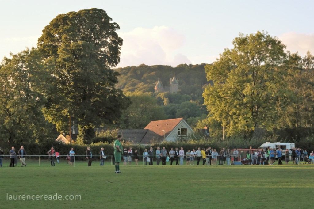That did have one massive advantage, it opened up a wonderful vista of Castell Coch (the Red Castle) in the background. If I’d have known about that backdrop when I first started watching non league football in Wales I’d have visited years ago. Mind you, when they move back, hopefully next season, it will open up a potential re-visit for the other pitch; we did similar for Chinnor FC.