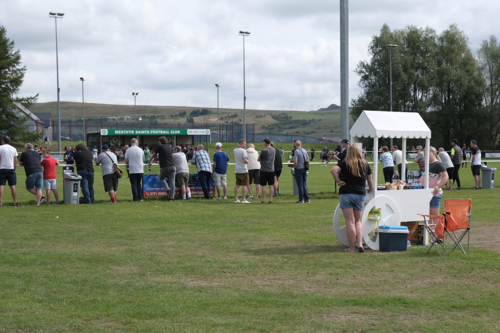 There was quite an atmosphere about the place when we arrived, and thanks should go to all at Aber Valley, they made sure we weren’t the only ones taking a coach to the game! An ice cream van arrived, promptly broke down and had to be towed away, but everywhere I looked there was someone holding either a tea, sweets or some form of merchandise they’d bought from the Saints.