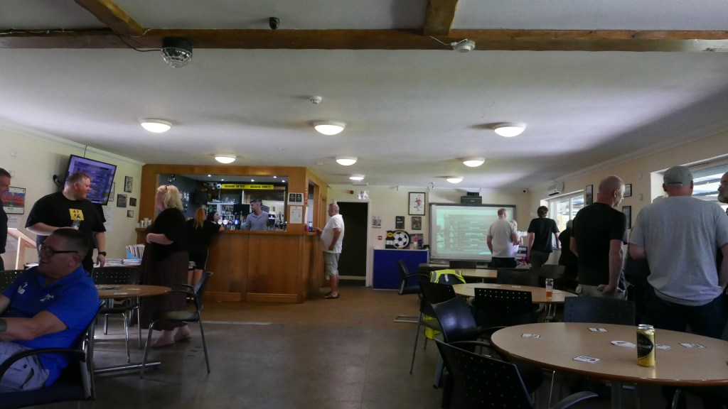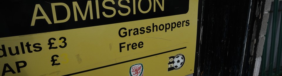 The upshot of that was I knew we’d be visiting not just a good ground, an exceptional one. The only issue I could see was how to park either the coach or the multitude of cars. The cars ended up in a field beyond and the coach was artfully squeezed in in a gap by the turnstiles. And yes, I think we all enjoyed the “Grasshoppers” typo at the gate, although with some groundhoppers’ hatred of artificial pitches I’m now wondering just inaccurate a term it was?