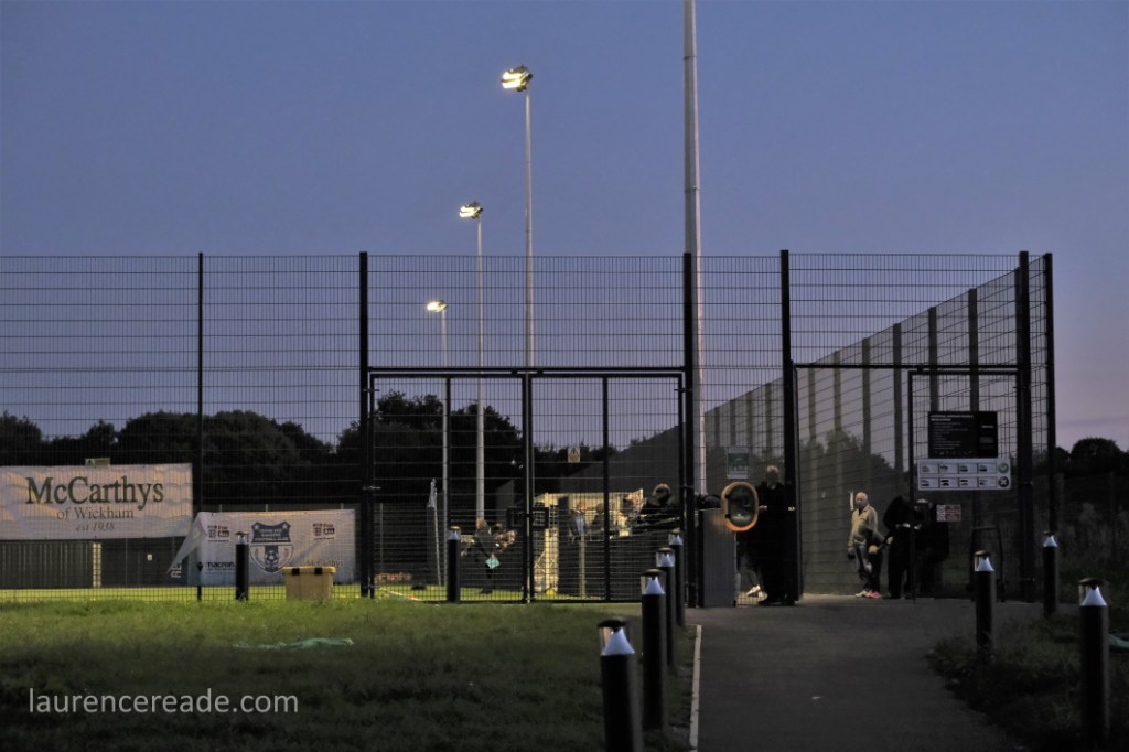 Hedge End’s new ground is found at the back of Deer Park Secondary School in nearby Botley. Now I’m sure some there will have looked at it as a typical floodlit 3G cage will an “Arena” stand, the type of thing you can see just about anywhere. Here too there’s less than one side open for spectators, but there is more to it than just a “Roll-on Roll-off” community football facility. Inevitably it’s the tea hut that made all the difference, the ladies delivering an adventurous menu with wit and charm.