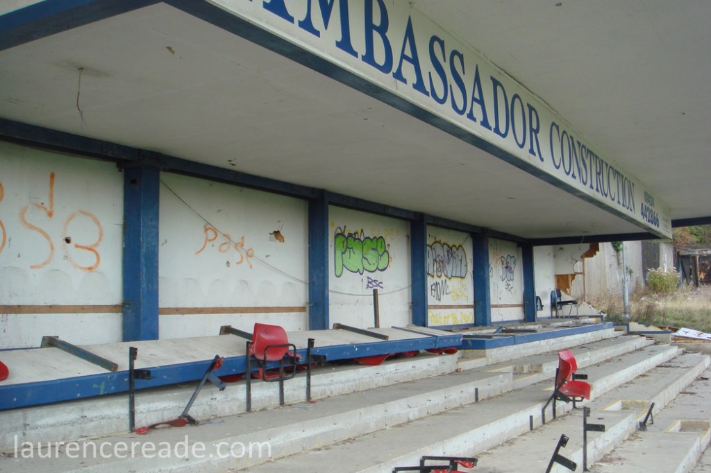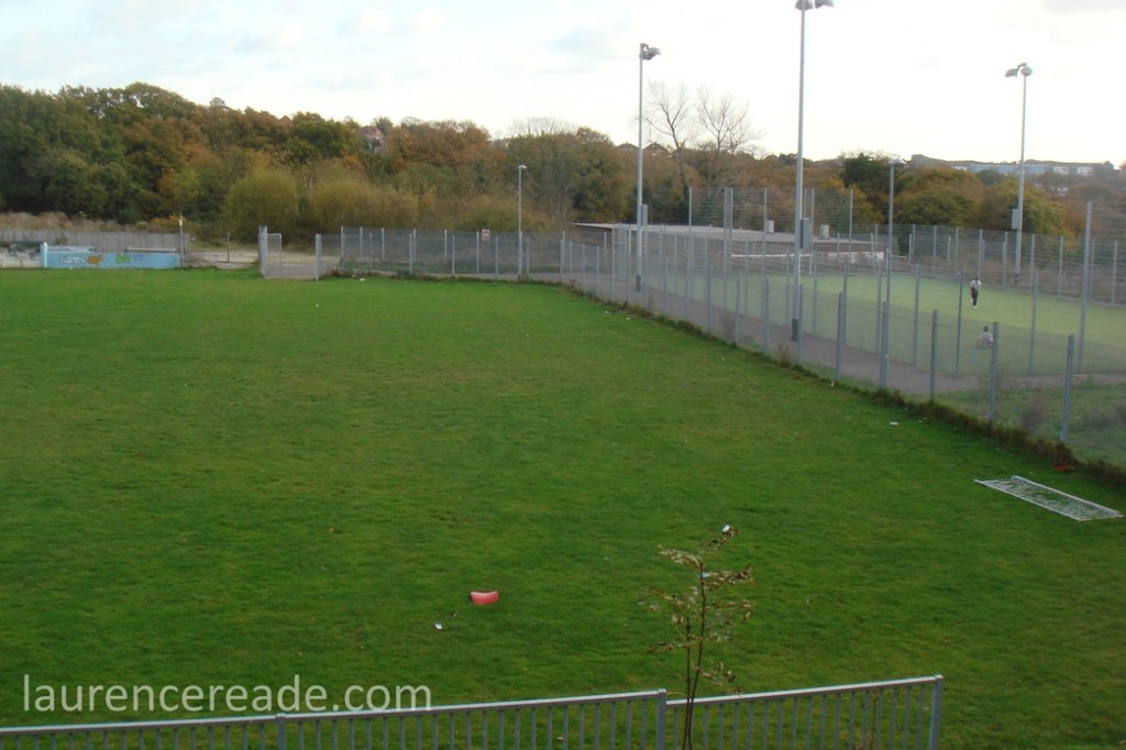 Park up in Elphinstone Road, and you’ll soon spot the remains of The Firs adjacent to, and further up the hill from the Pilot Field. The final tenants there were St Leonards FC, formally known as Stamco who folded in 2003. It will always be a point of pain for me, as I turned up there two years earlier for a Southern League game just as it was being called off due to a waterlogged pitch. No, I didn’t manage to ever see a game there, and fairly soon after St Leonards folded a caged 5-a-side pitch was built, making sure no other club took the place on. I had a look round in July 2007 and there was still plenty left.