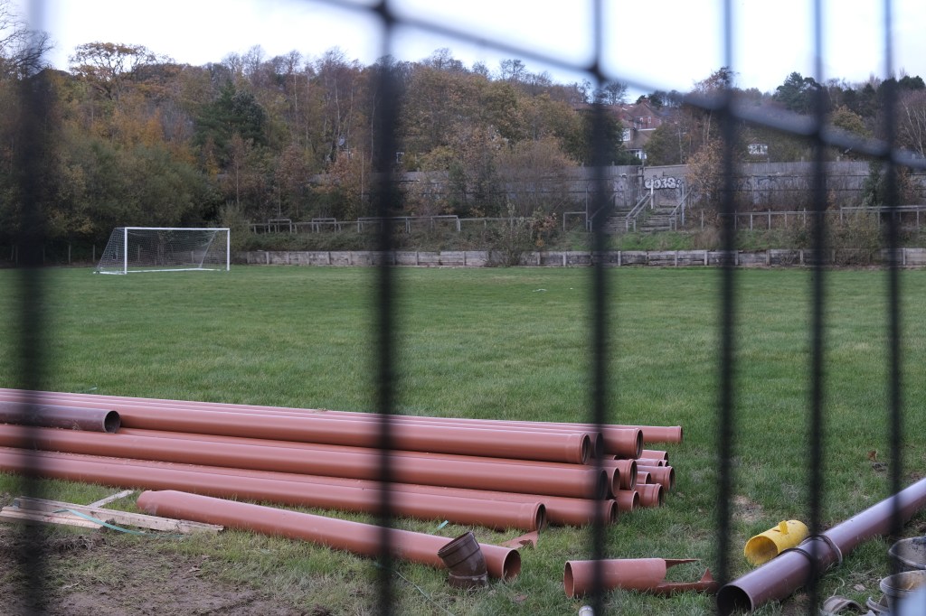 You can still see signs of the Pilot Field’s former tenants, look at the light box showing the way to the bar, the word “United” is in a slightly different font, and look in the main stand to where the paint has peeled. And yes, its that stand, dating from 1926 that is what will draw you here, and do make sure you check out those amazing buttresses keeping the hill at bay!