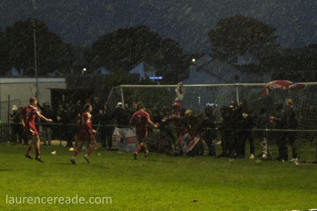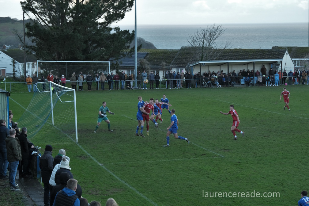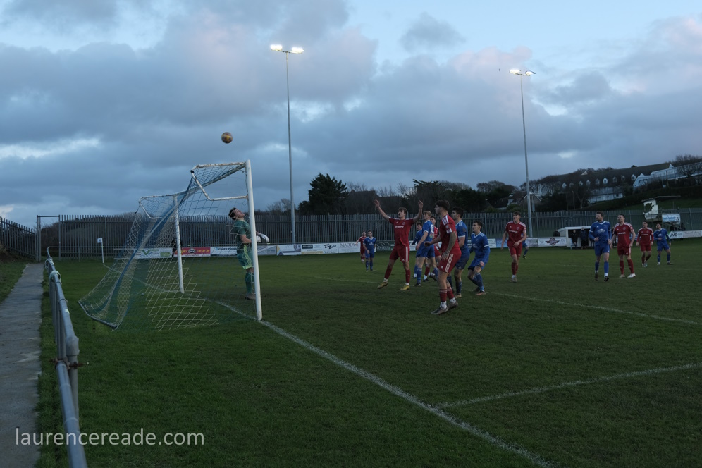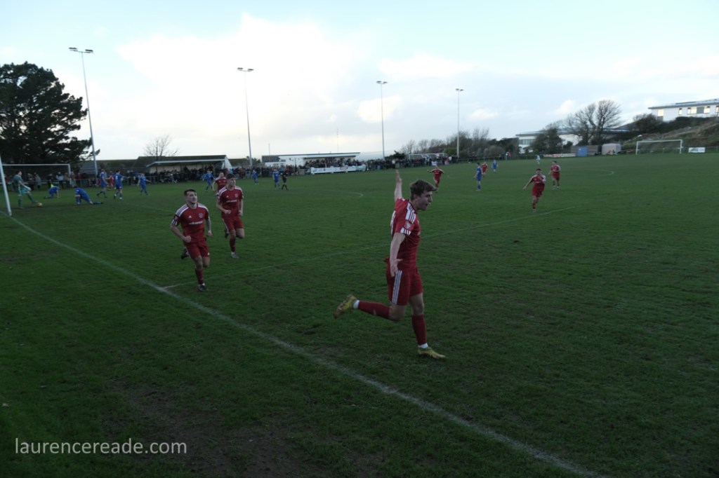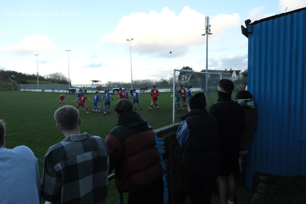 I was surprised at the club’s choice of music to play over the PA when I arrived. There was ABBA’s “Money Money Money,” and Pink Floyd’s “Money” and plenty more. It was clearly aimed at the visitors, presumably tongue-in-cheek, but the joke rather backfired on Ilfracombe as Barnstaple were worthy winners, in the cold and rain.