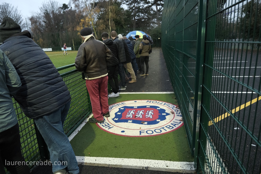 While we knew a Lads Club vs Westfields tie was the closest of local derbies, neither Robyn and I were expecting it to be as intense as it was. The single turnstile was inadequate for the huge attendance, and plenty missed kick-off. I managed to find a seat in the stand with the Westfields committee, that with hindsight may or may not have been a good idea.