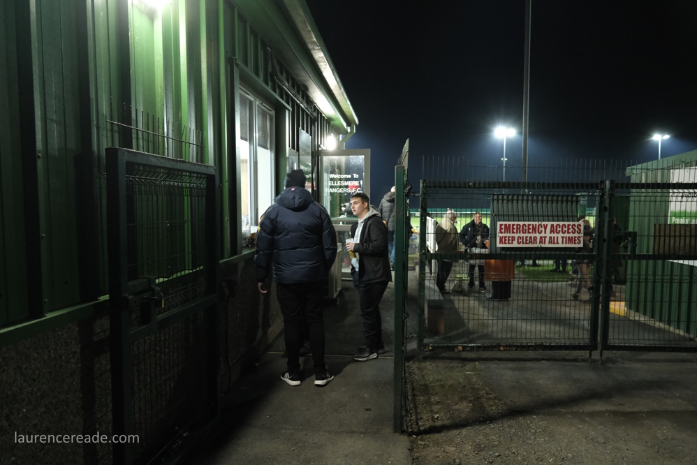 That relative isolation may well be why Ellesmere did so well out of this hop game, it certainly was the reason I’d not seen a game here! The systems we use at GroundhopUK are now well-engrained the point of compromise so well-established, that the set up with the prebooked ticket and programme packs near the turnstiles is standard practice, and people are now used to getting the event’s programmes all at once, all at the first game. The stall is a chance to catch up too, it was fun to see Andy from the SCEFL and Harvey from the Northern League having a chat, each representing leagues from the opposite ends of England.