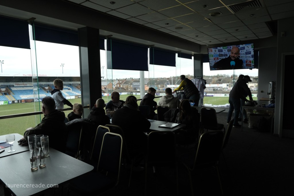 I’d very nearly left it too late; this iteration of football for Wakefield had announced they were leaving Featherstone Rovers RLFC’s Post Office Road, to “return” to Belle Vue, home to Wakefield Trinity RLFC. In footballing terms, they hadn’t been around for long, being formed in 2019 initially playing at the Dorothy Hyman Stadium, in Barnsley. They moved to Post Office Road for the start of the 20/21 season, but this was to be their final game in Featherstone, so Robyn and I made a beeline for it while we still could. But the history of Wakefield and the round ball goes back a lot further than 2019.