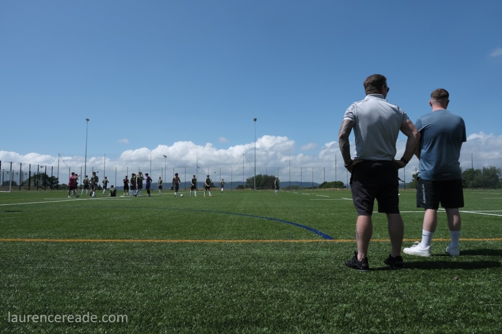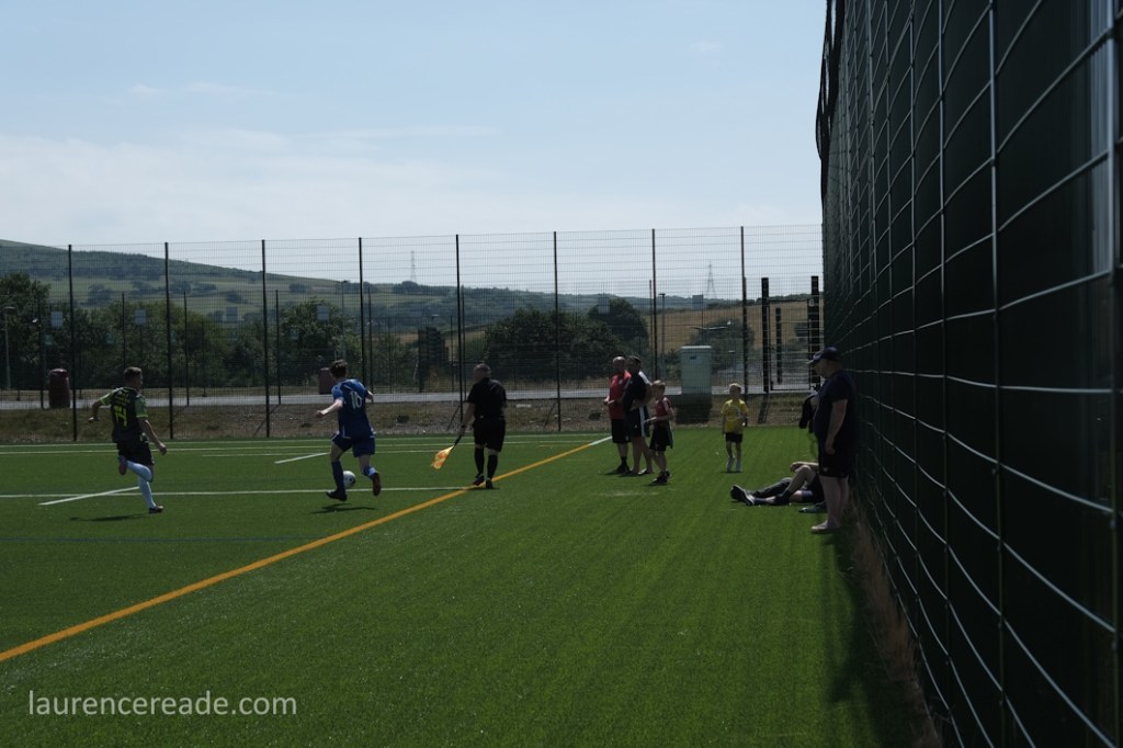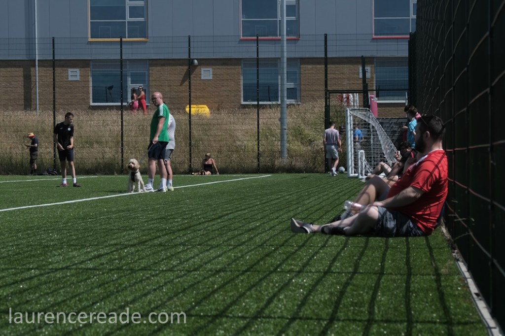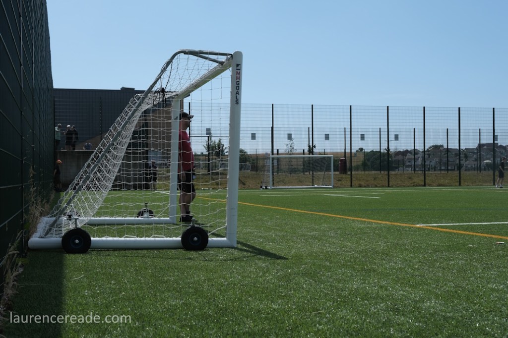 That and it was hot and humid too, in fact so humid it was hard work watching the game, and I don’t want to imagine playing in it! I wasn’t the only one flopped out pitchside, although I was probably the only one trying to get interesting items in the background of many of the photos. I don’t think anyone is a fan of watching games in 3G cages but at least here there was a backdrop to be worked with.