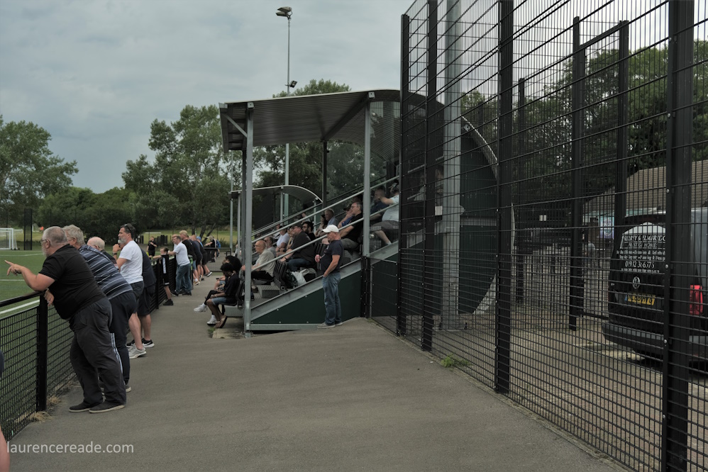 For the pitch hoppers there’s more pitches too, and the clubhouse gives the impression of a ground waiting for a tolerably ambitious Step 7 club to move in and see their route to promotion opened up. Here there were two games played here on the Saturday, this was the first, and the many other groundhoppers scattered to the four winds afterwards, firstly to avoid the thunderstorms (just look at the backdrop to some of the photos!) and secondly to find another game.