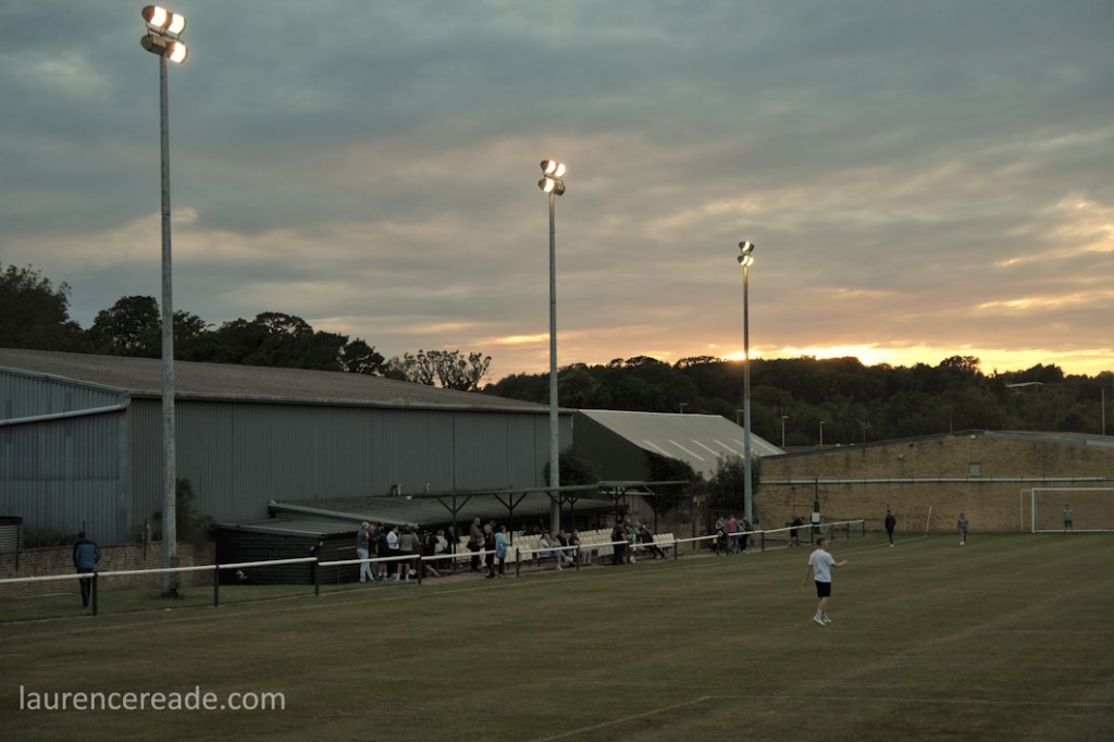 But this isn’t just any back pitch, its one with hard standing, a stand and floodlights. Or putting it another way if it was a standalone ground just about any groundhopper would make a beeline for it. Just the fact that it isn’t enclosed means it doesn’t quite fulfil Step 6 ground gradings. The irony that visitors Greenways share at K Sports because of those gradings wasn’t lost on me.