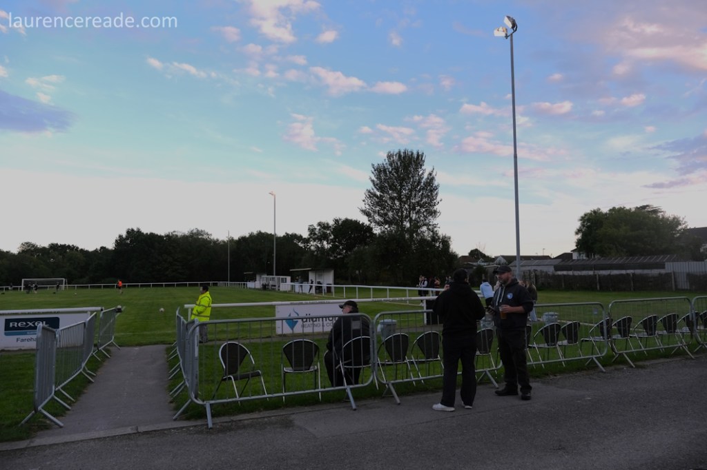 That helipad does impact on how the ground looks. I’m told the club can’t put up metal structures, for fear it might impact on the aircraft’s navigation systems. That avoids just about anything modular so the club have had to be inventive to fulfil ground grading rules; I think you’ll like the results! Do look out for the creek formed by the River Wallington. The derby between Fareham Town and AFC Portchester is known as El Creekio for a reason!