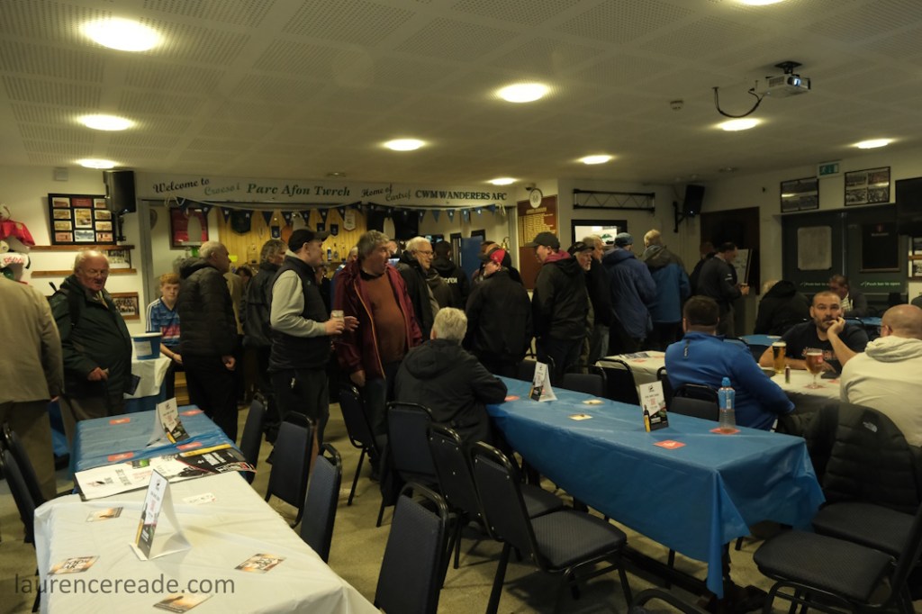 After the collective soaking we’d taken at Bryn Rovers we needed a little TLC. It wasn’t far to Cwm-twrch Isaf, around 5 miles, but I was happy to see a club official pointing out where to park the coach, and he took one look at me as a squelched towards the clubhouse and commiserated. The thought was appreciated, as I made for the final game of the hop.