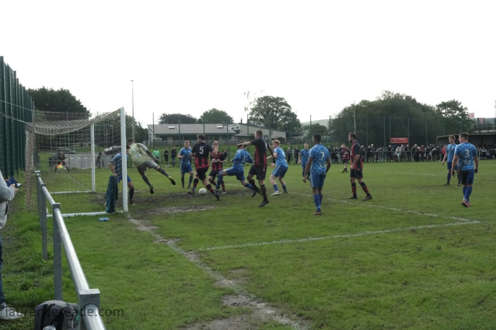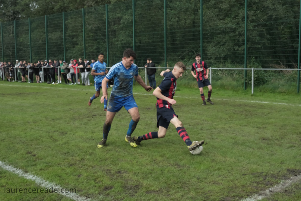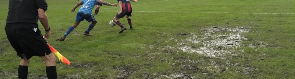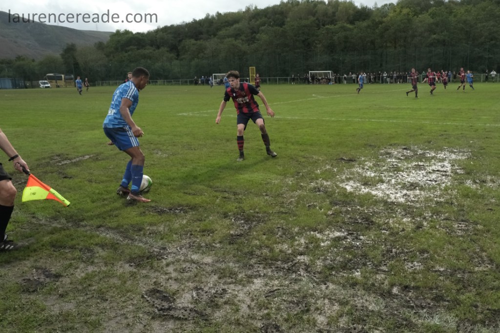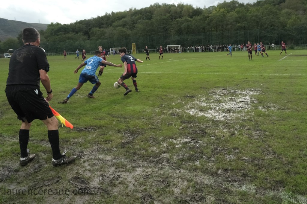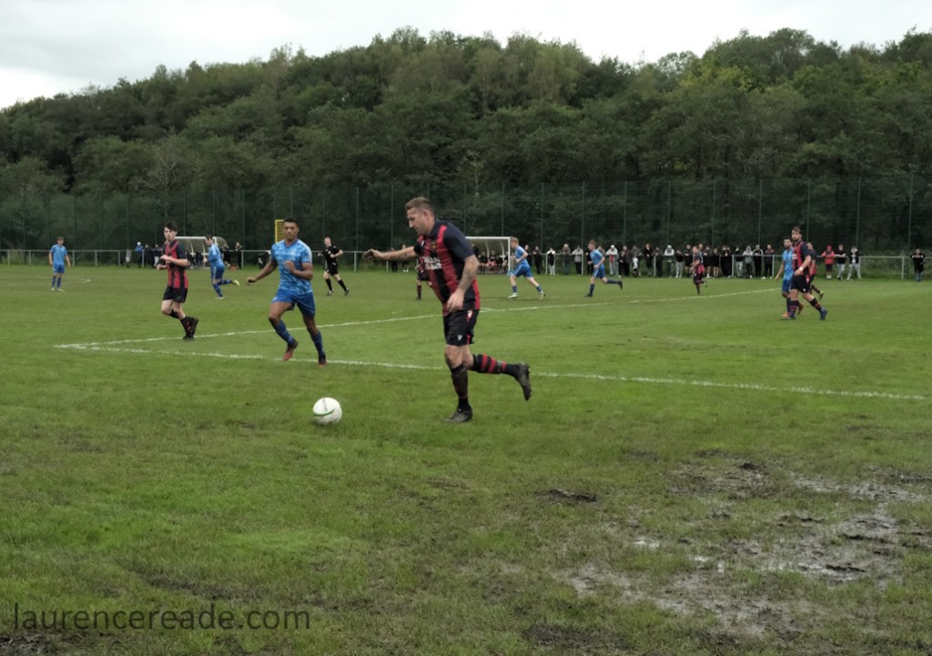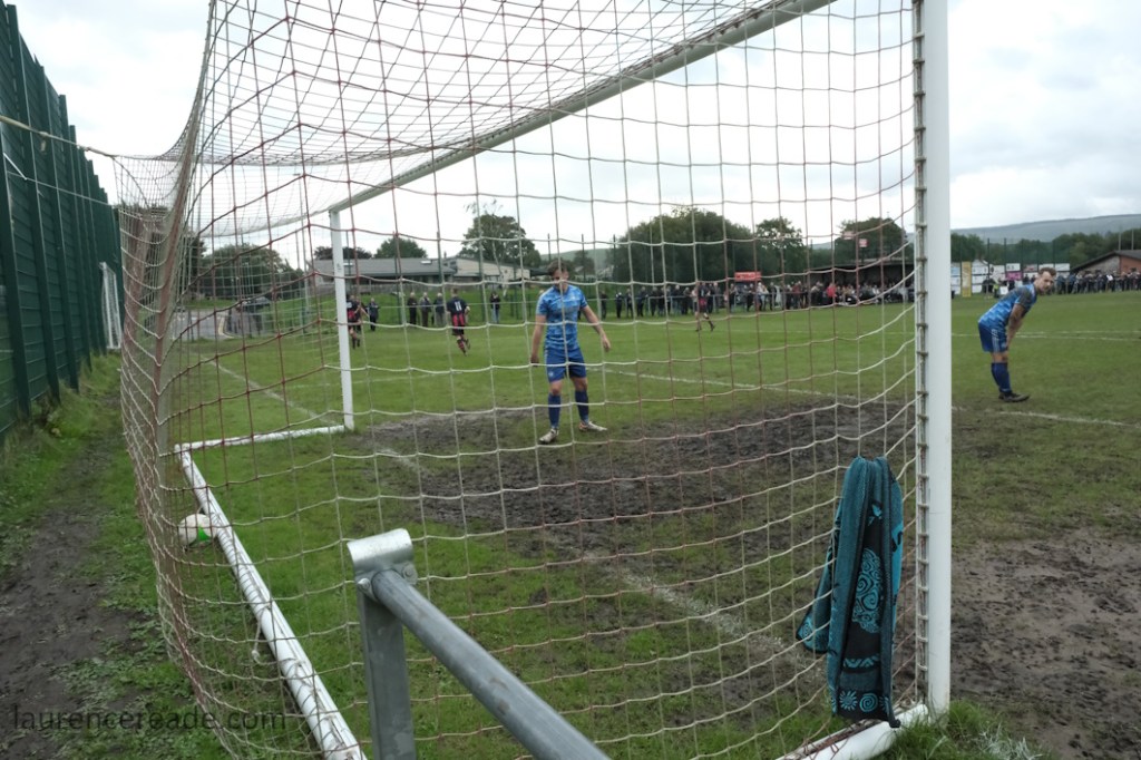 The food was superlative too whether you went of the lamb cawl or the chicken curry. In fact the only downside was that as wet clothes dried out the condensation was something to behold! You may spot the remnants of it on a few of the photos. Speaking of that we were lucky to have a game, the first photo was sent to us by the club, so all credit to the club for working so successfully on the pitch and to referee Ryan Kenny for generous view of the conditions.