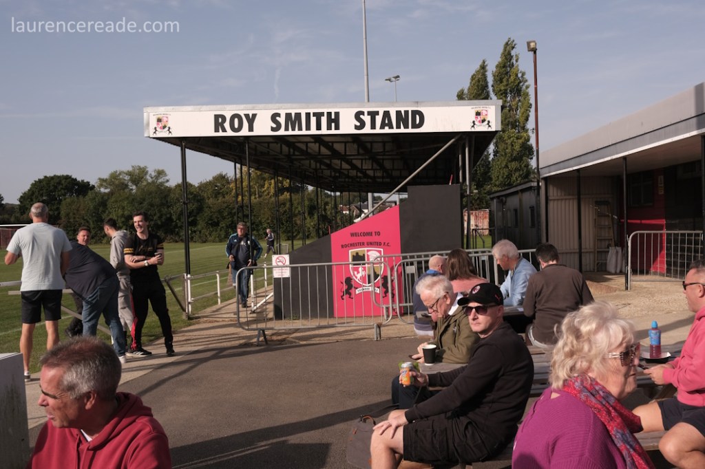 I sat in the clubhouse, and enjoyed the fact that there was someone distributing teamsheets. Genuinely all I needed to do was watch the world go by. That proved to be interesting speaking to both club’s officials at half time. Rochester are in that time of life where they’ve carried out the ground improvements to keep themselves in the SCEFL but are eyeing the future. Do they try to invest in 3G pitch to increase community involvement and income? As for Faversham Strike Force, half their battle is telling everyone they’re an independent club, whose sole connection to Faversham Town is that they groundshare there.