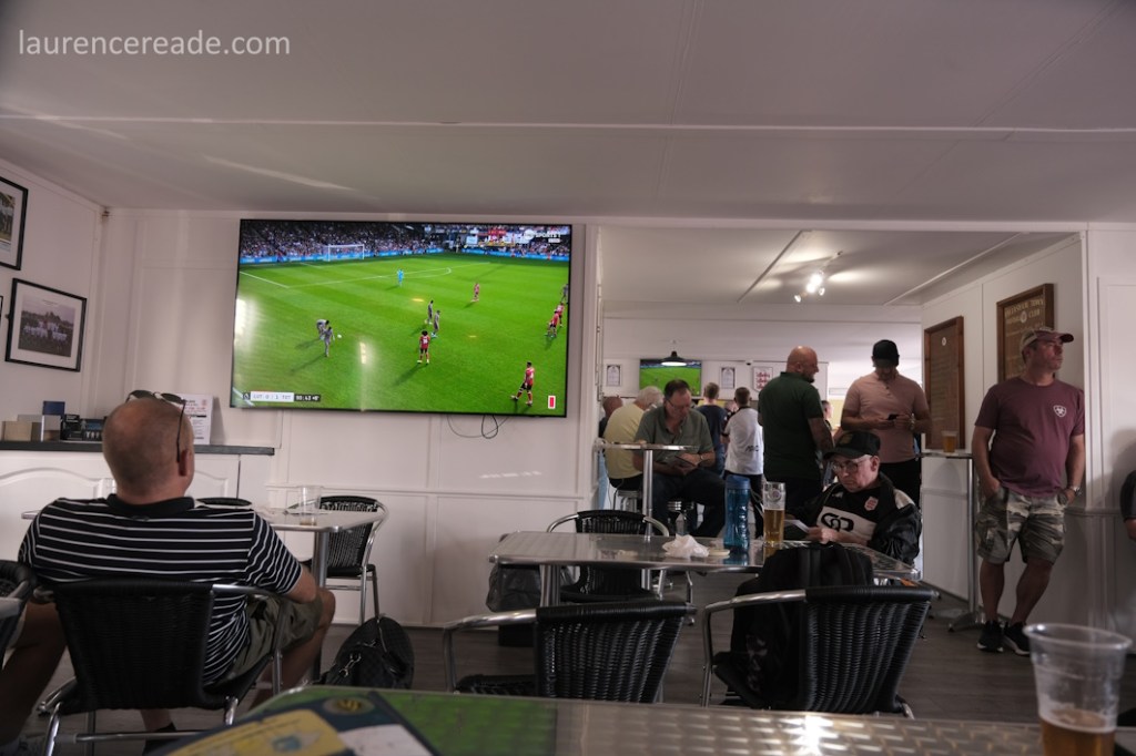 Elsewhere the club simply coped admirably with the 150 or so extra on the gate. In fact the only clash of the club’s world and the groundhoppers’ involved the metal badges so many of us collect. Groundhoppers know the going rate, somewhere between £3 and £4 so to see badges costing £15 was something of a culture shock. Of course we weren’t comparing apples with apples these badges were made by jeweller and Chris Berezai was able to sell the humbler badges simply by walking round the crowd and spotting the usual suspects (like me!)