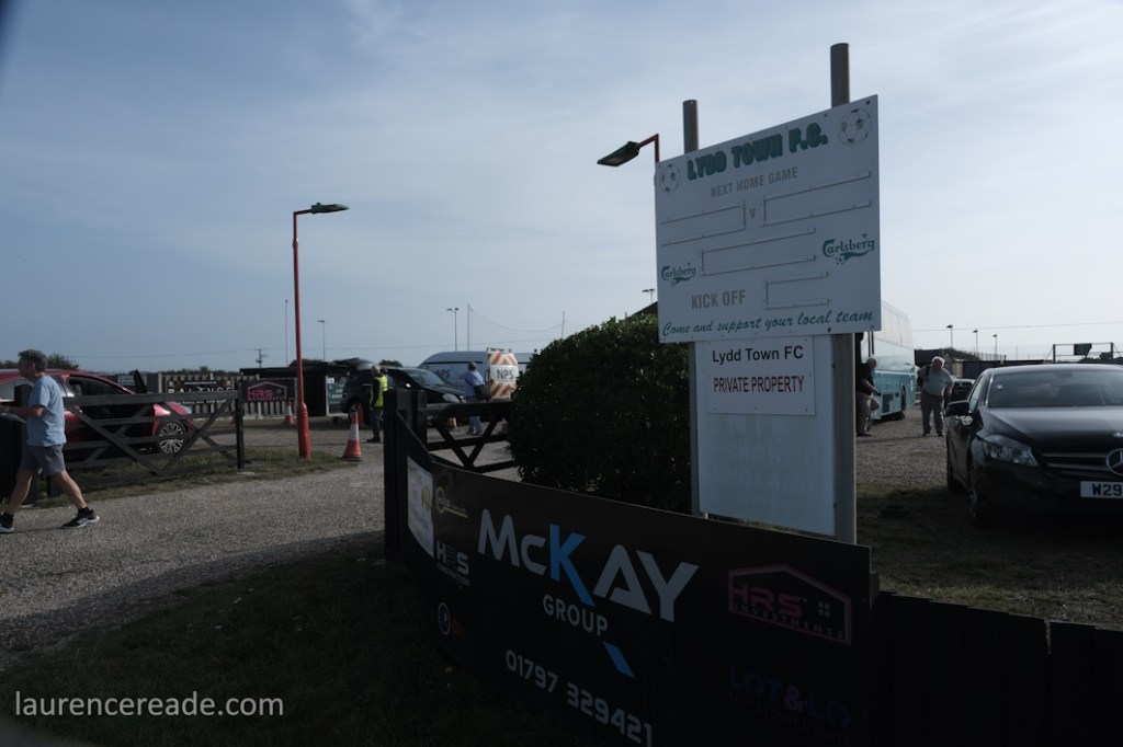If there was a silver lining to the hotel in Chatham making such a pigs ear of the GroundhopUK SCEFL Hop booking for we saw it on Sunday morning. Being in Folkestone instead meant we were closer to Lydd than we’d planned, and the upshot was more sleep. Even coach driver Shirley looked notably relaxed as she made a bacon sandwich in lieu of breakfast.