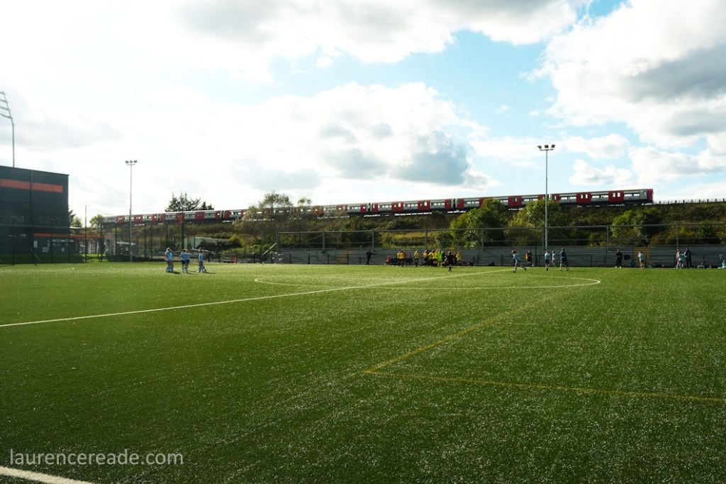 At this point I should explain the geography of The Hive. You may remember me attending a game on Pitch ATP1 at the southern end. The grass pitch is to the east, but to the north, behind the away supporters’ stand, at the base of the Jubilee Line is an artificial pitch earmarked for the London Bees use, presumably when the construction of the stand on the railway pitch side is complete. The terracing for that stand will be recognisable to Barnet fans, it’s the former away end at the main stadium!