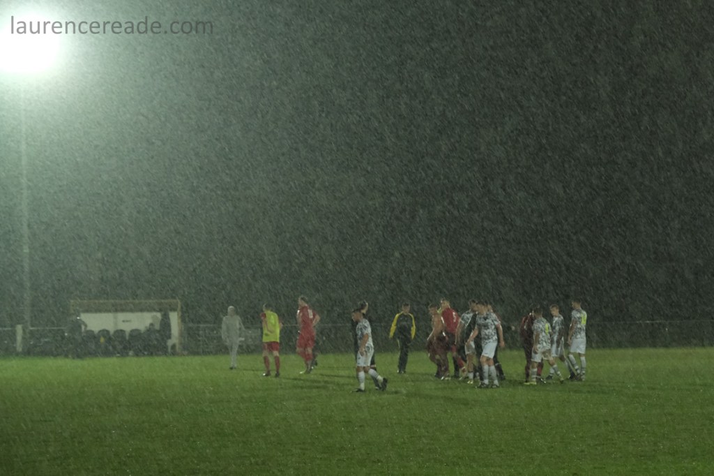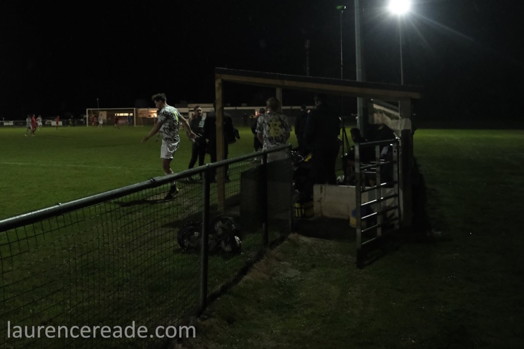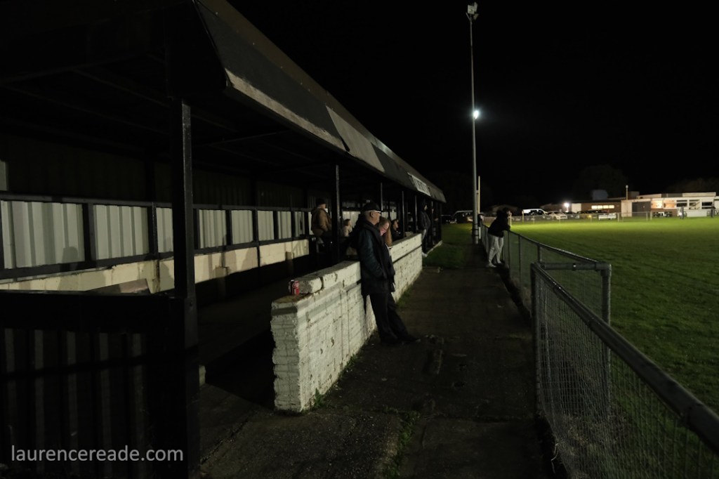 Look at the lack of hard standing around all 4 sides of the ground. The stand with few seats and an “Accessibility section” with a step up to it, the lack of a pay booth or similar. The ground now is one with potential, and for a return to Pyramid Football would mean improvements, that I’m sure would mean negotiations with the Parish Council. Even the floodlights would need attention, one floodlight tower is out-of-action and when the rains came both the floodlights and the clubhouse lights blinked alarmingly. For a time I thought we were heading for an abandonment. That said, the tea bar with it’s line of air-fried bacon rolls is worthy of any level of the game.